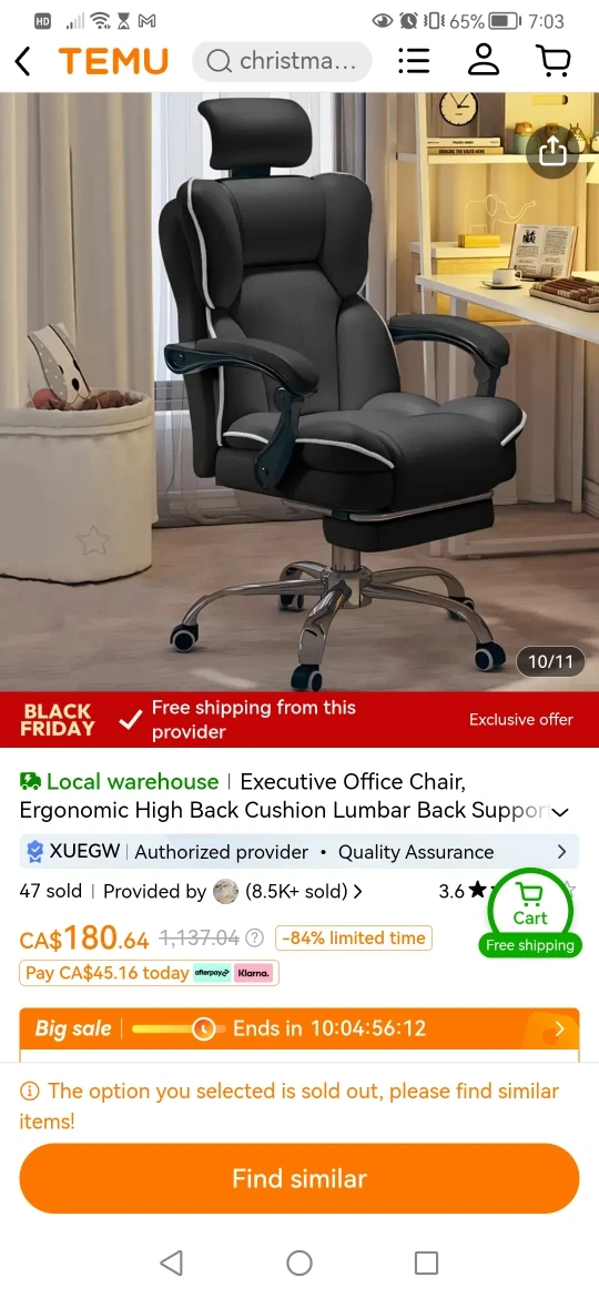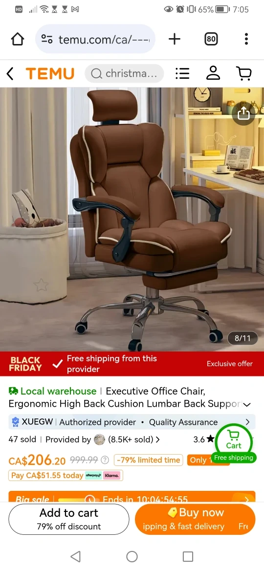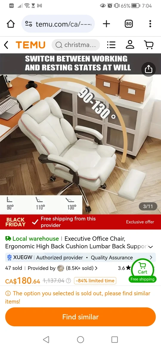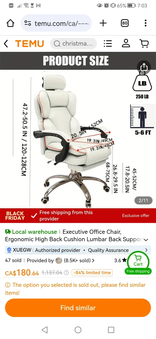 Ergonomic Chair – Used Like New I purchased this chair from Temu few months ago for $205 (including taxes). While it’s a great chair overall, I’m selling it because the backrest isn’t as comfortable for me personally. I’m just looking to recoup some of my cost, so feel free to send me reasonable offers. Condition: Used, like new The headrest had white marks when it first arrived (minor and barely noticeable). The top part of the backrest is slightly slanted to the left. Important Info: Low offers will be ignored. Local pick-up only, as I don’t drive. If you have any questions, feel free to ask! Thanks for checking out my listing.