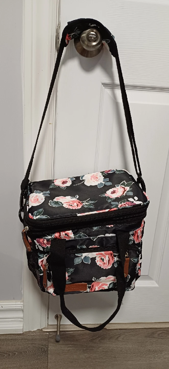This floral lunch bag is perfect for keeping your food fresh! It's insulated and has a stylish floral design.