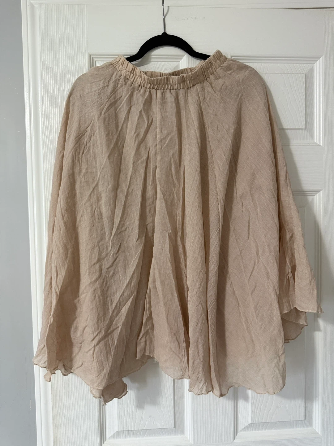 Flowy Exican skirt in a beautiful neutral colour! The tag indicates it's made of 100% linen, so it's super breathable and comfy. Perfect for spring or summer!