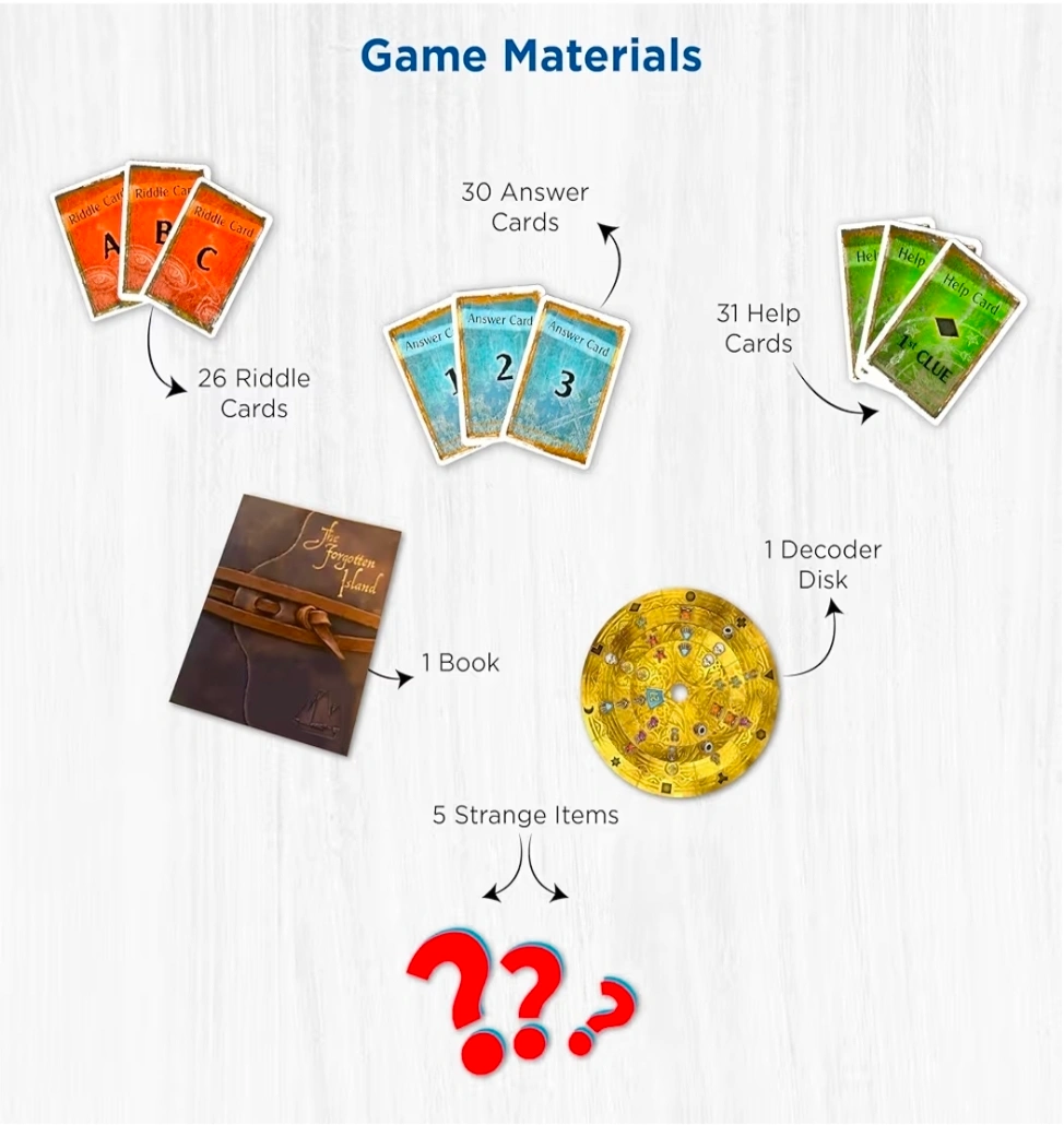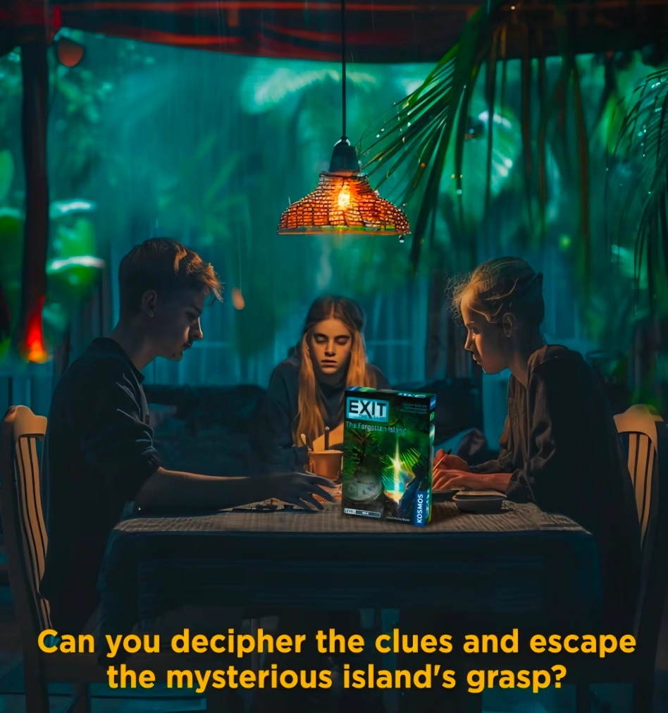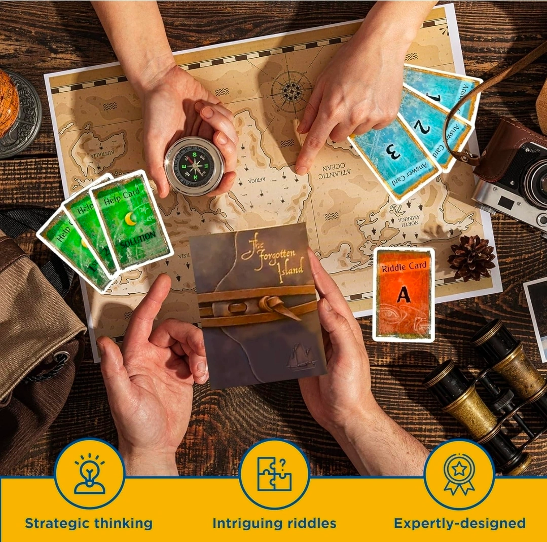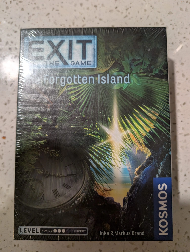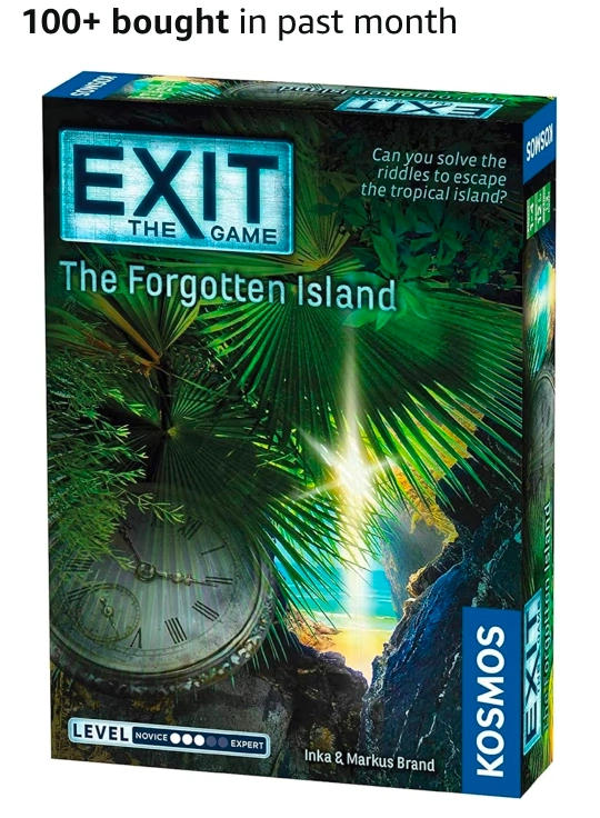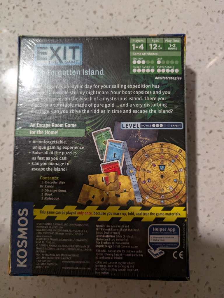 NEW SEAL Looking to test your strategic thinking? This escape room game, Exit The Game: The Forgotten Island, is perfect for solving intriguing riddles! It's expertly designed for 1-4 players, ages 12 and up, with a play time of 1-2 hours. The game includes a decoder disk, 87 cards, 5 strange items, 1 book, and 1 rulebook