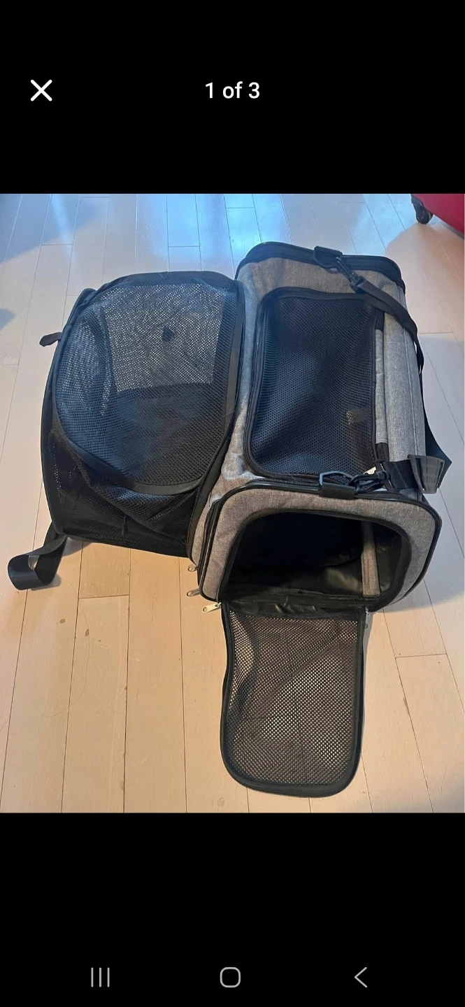 177Selling a grey expandable pet carrier for cats or small dogs! It's in great condition and perfect for travel or vet visits. The carrier features mesh windows for ventilation and visibility, and it can be expanded for extra space. Lightly used.