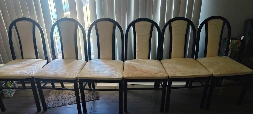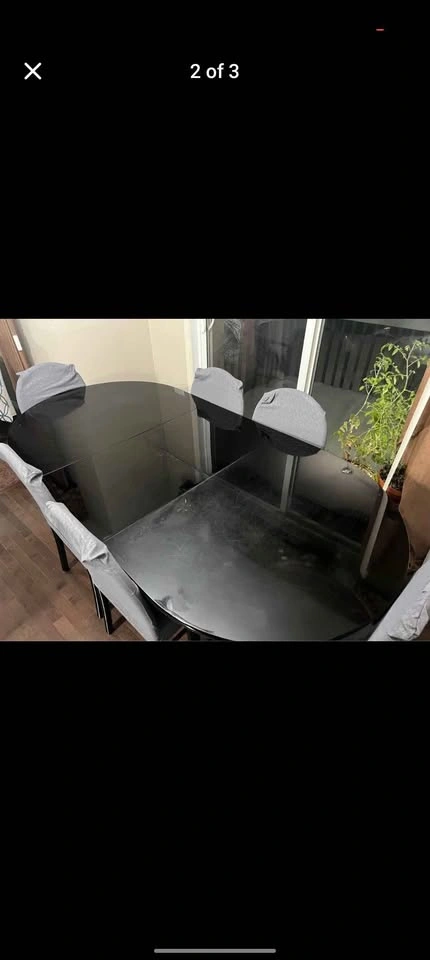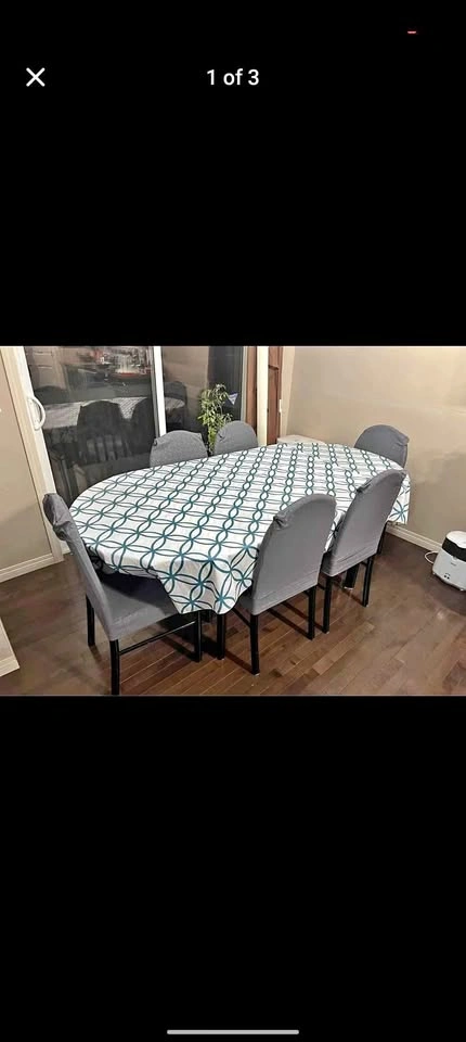 Dismantled and ready to go. - Expandable Dining table - Comes with 6 chairs - Really good condition - Chairs also has covers which are removable and washable Dimensions: Table: Length - 78” (when fully expanded) - 60” (when not expanded) Width - 39” Height - 30” Chair: Height: 36” (18” till seat) Length: 15” Width: 18”