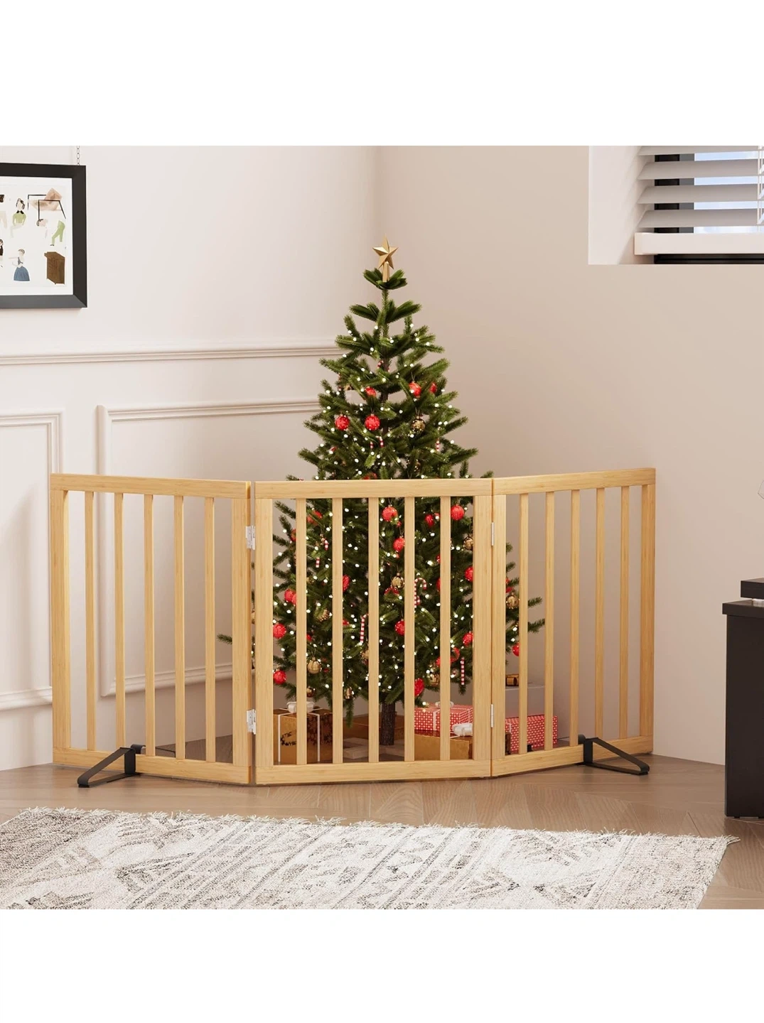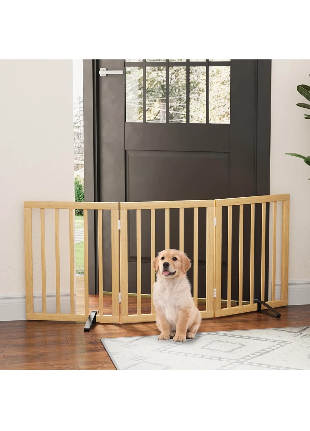 62Keep your furry friends safe with this expandable wooden pet gate! It's 24" tall and 55" wide, perfect for doorways or hallways. The gate features a folding function for easy storage and double-open hinges to adjust the angle and length. It also comes with anti-slip foot pads and 2 metal support feet for extra stability