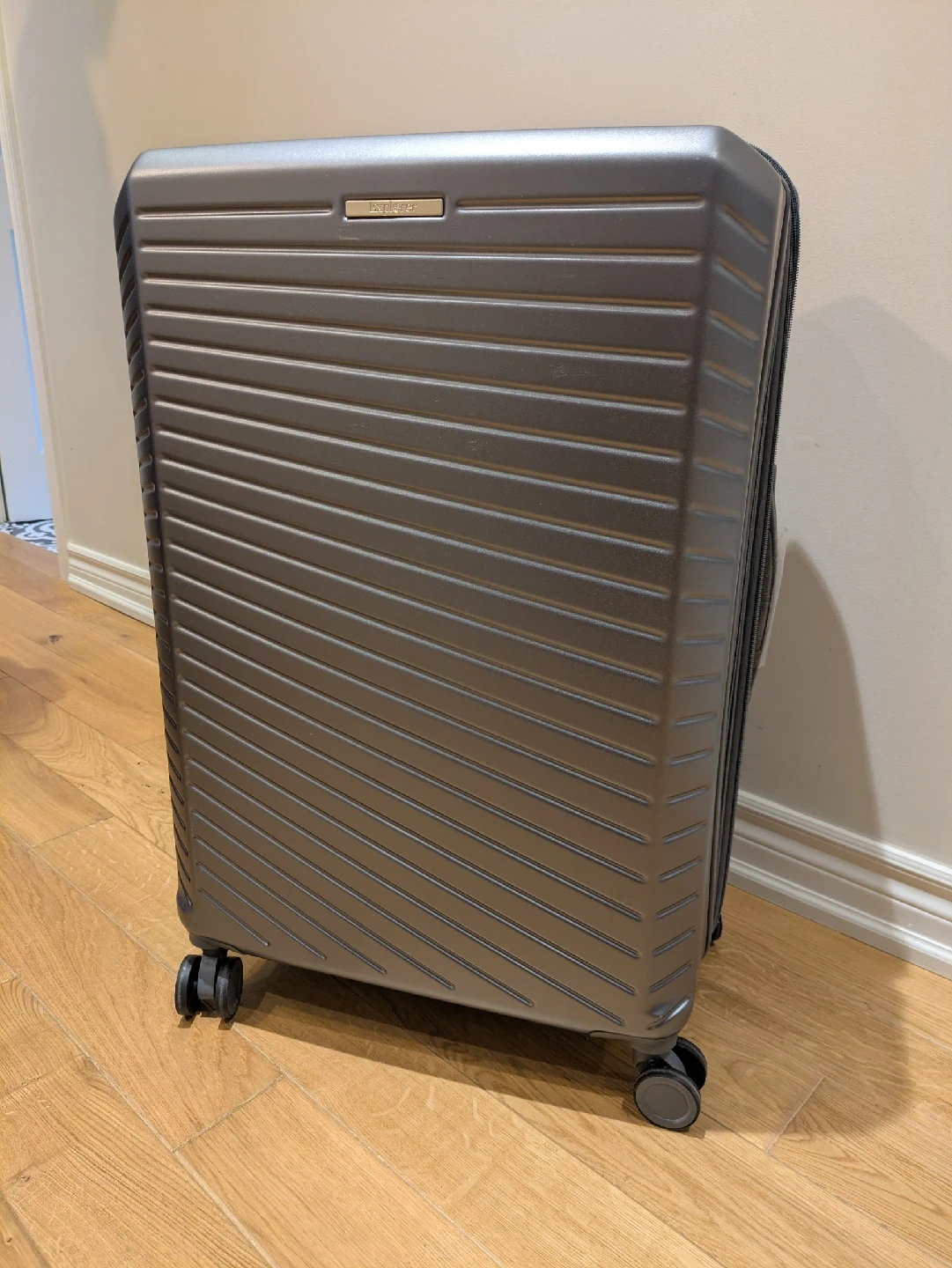 22Explorer 28” Hard Shell Spinner Suitcase – Excellent Condition Brand new! Never used! We bought it and it was too big. Lightweight and durable **Explorer hard shell suitcase** in sleek metallic grey. * Large **28-inch checked luggage size** — perfect for long trips * **360° spinner wheels** for easy rolling * **Expandable zipper** for extra packing space * **Top and side handles** for easy lifting * Clean inside and out, from a smoke-free home NEVER USED and in excellent condition. All zippers and wheels work perfectly. Height: 28 inches Pickup near Victoria Park and Danforth