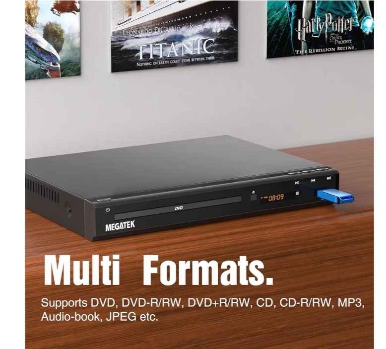 MEGATEK Region-Free HDMI DVD Player for TV, Compact CD/DVD Player with USB Port, Plays All Region DVDs & Multi Formats, Metal Housing, HDMI/RCA Cables & Remote Included