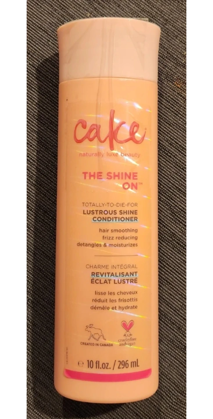 Cake The Shine On conditioner is designed for lustrous shine. It's a totally-to-die-for formula that smooths hair, reduces frizz, detangles, and moisturizes. Contains Sweet Almond Oil, Pentaclethra Macroloba Seed Oil, and Butyrospermum Parkii. 10 fl. oz. bottle.