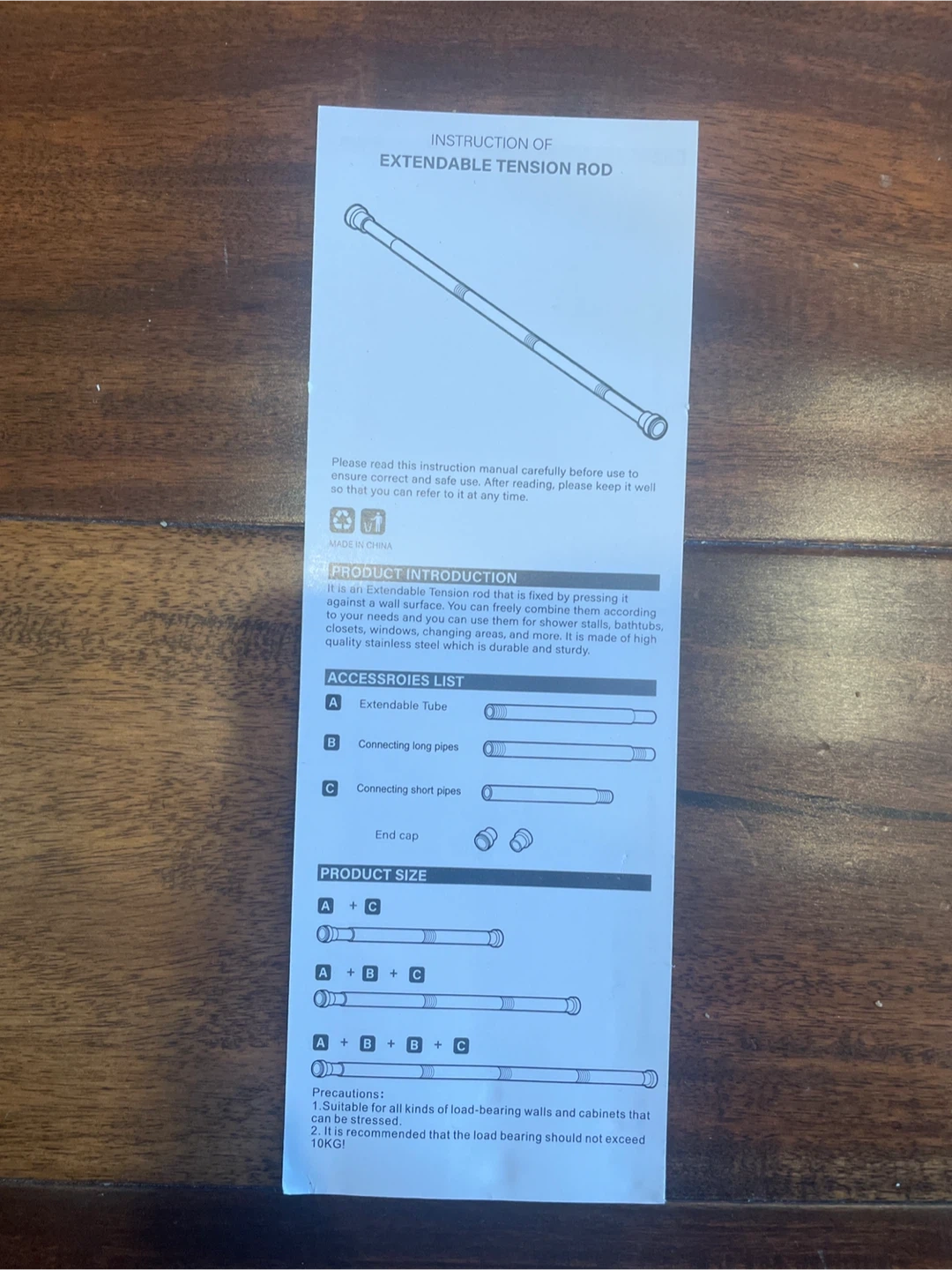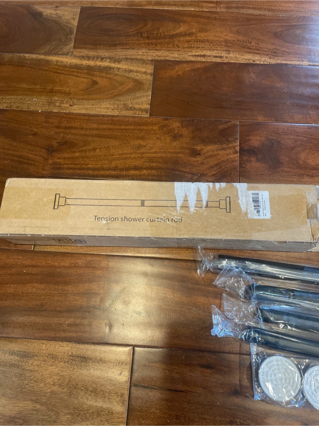 Selling a brand new extendable tension shower curtain rod, still in its original packaging It's an extendable tension rod that is fixed by pressing it against the wall, providing a secure and sturdy solution to your shower needs Made of high quality stainless steel which is durable and sturdy Included components: - Extendable tube - Connecting long pipes - Connecting short pipes - End cap