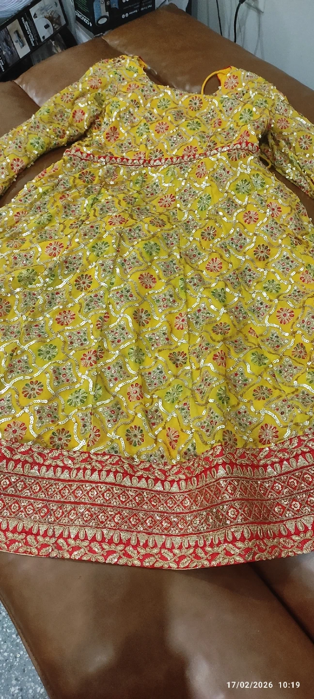Yellow Sequin Kurti with Green Dupatta and Yellow Pants