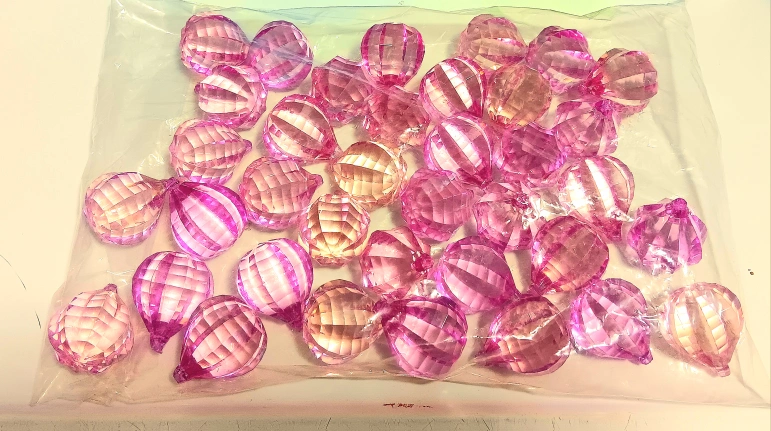 113I am selling a bag of new faceted, round, pink acrylic beads, perfect for jewellery making or craft projects. These beads add a touch of sparkle and colour to any design, and I estimate there are approximately 40 beads in the bag. * **Material:** Acrylic * **Colour:** Pink * **Shape:** Faceted Round * **Condition:** New I've got a bag of beads here that are looking for a good home! They're not just any beads; they're pink and ready to party. If you're seeing this ad, yes, they're still available! Excellent condition. Open to bundling with other items I have listed. Grab a deal before it's gone. I'm Downsizing. From a VF, SF, PF, and BF home. E-transfer is not available at the moment. Pick up Red River Blvd. Delivery charges apply if you like it delivered within city limits. Please see my other ads. Thank you!