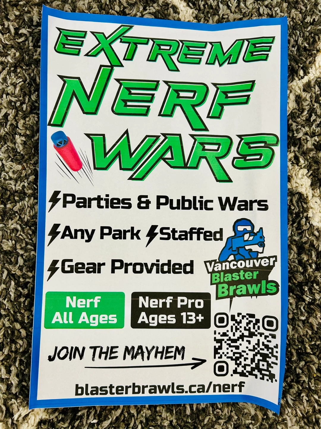 18Get ready for some Extreme Nerf Wars! This is for parties and public wars, staffed and ready for any park. Gear is provided. There's Nerf for all ages and Nerf Pro for ages 13+! Join the mayhem!