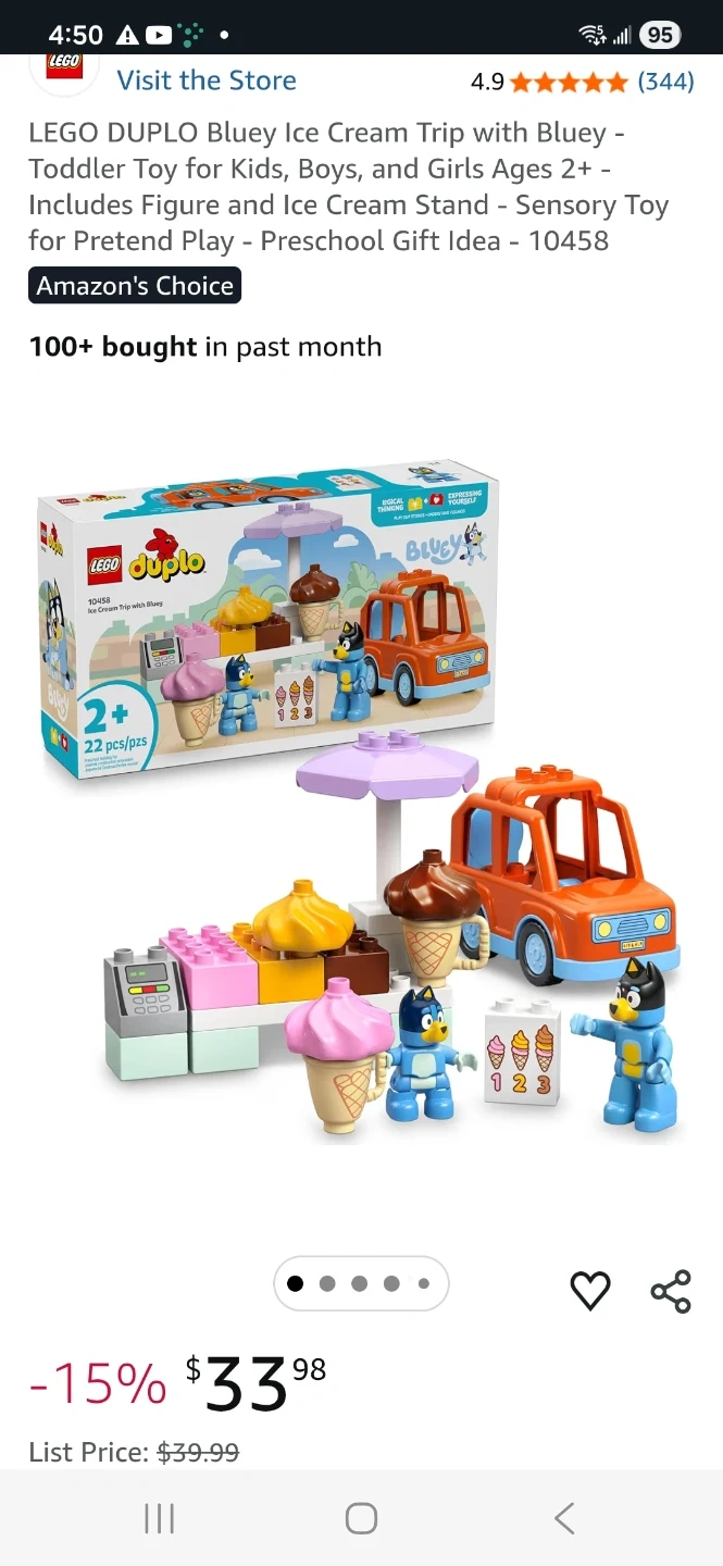 LEGO DUPLO Bluey Ice Cream Trip with Bluey. Ages 2+ - Includes Figure and Ice Cream Stand.