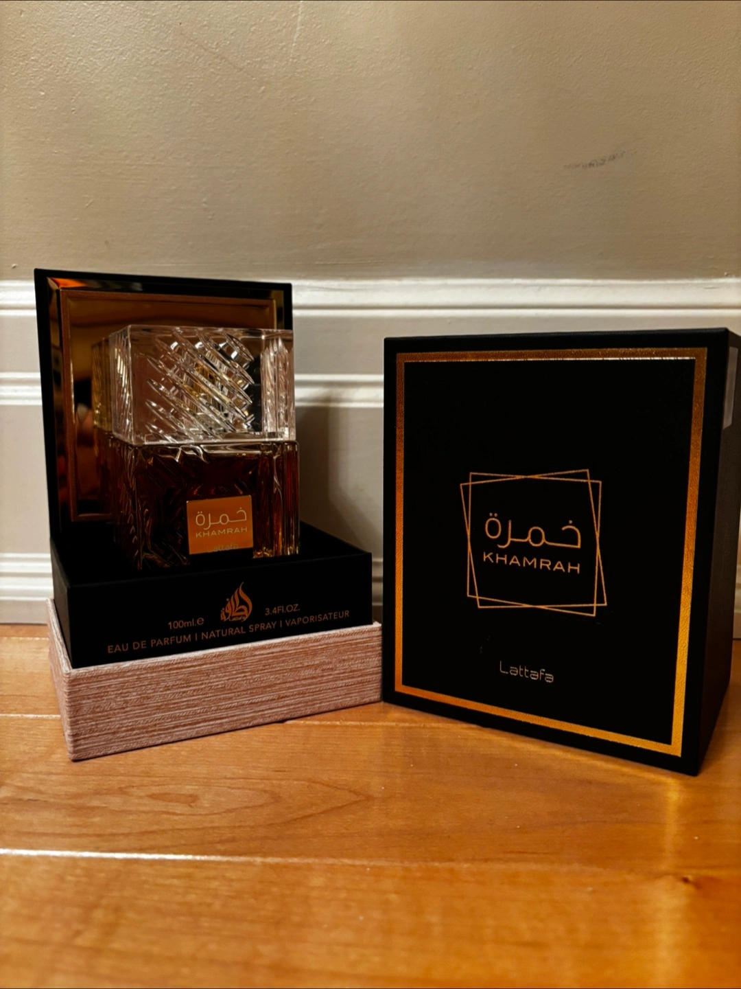 Unopened 100ml bottle of Lattafa Khamarah Eau De Parfum. Comes in original box. Beautiful, luxurious packaging. Can deliver to you. Brand new quality.