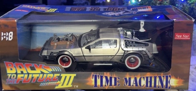 I'm offering a Sun Star Back To The Future lll Time Machine DeLorean. It's a detailed replica of the iconic vehicle from the movie. This is in perfect condition, and in original packaging and box. All of the parts are included. Brand: Sun Star, Movie: Back To The Future lll, Vehicle: DeLorean Time Machine. Perfect for Christmas! If the ad is still up, yes, it's still available! No need to ask, just let me know when you can pick it up. I'm clearing out space, so it's gotta go!