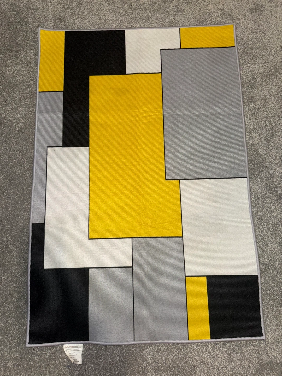 Geometric Accent Rug and Corgi Glitter Design mat. Both $10
