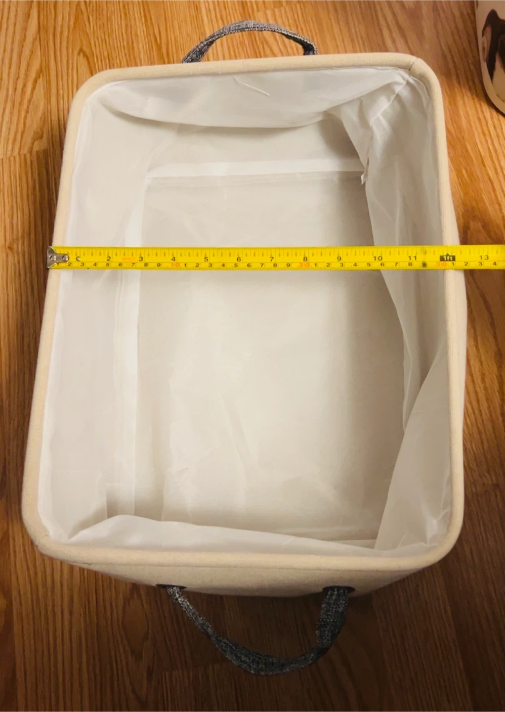 Beige Fabric Toy Container, (It’s brand new but somehow must have touched a bit of water, the very bottom has slight water stains)