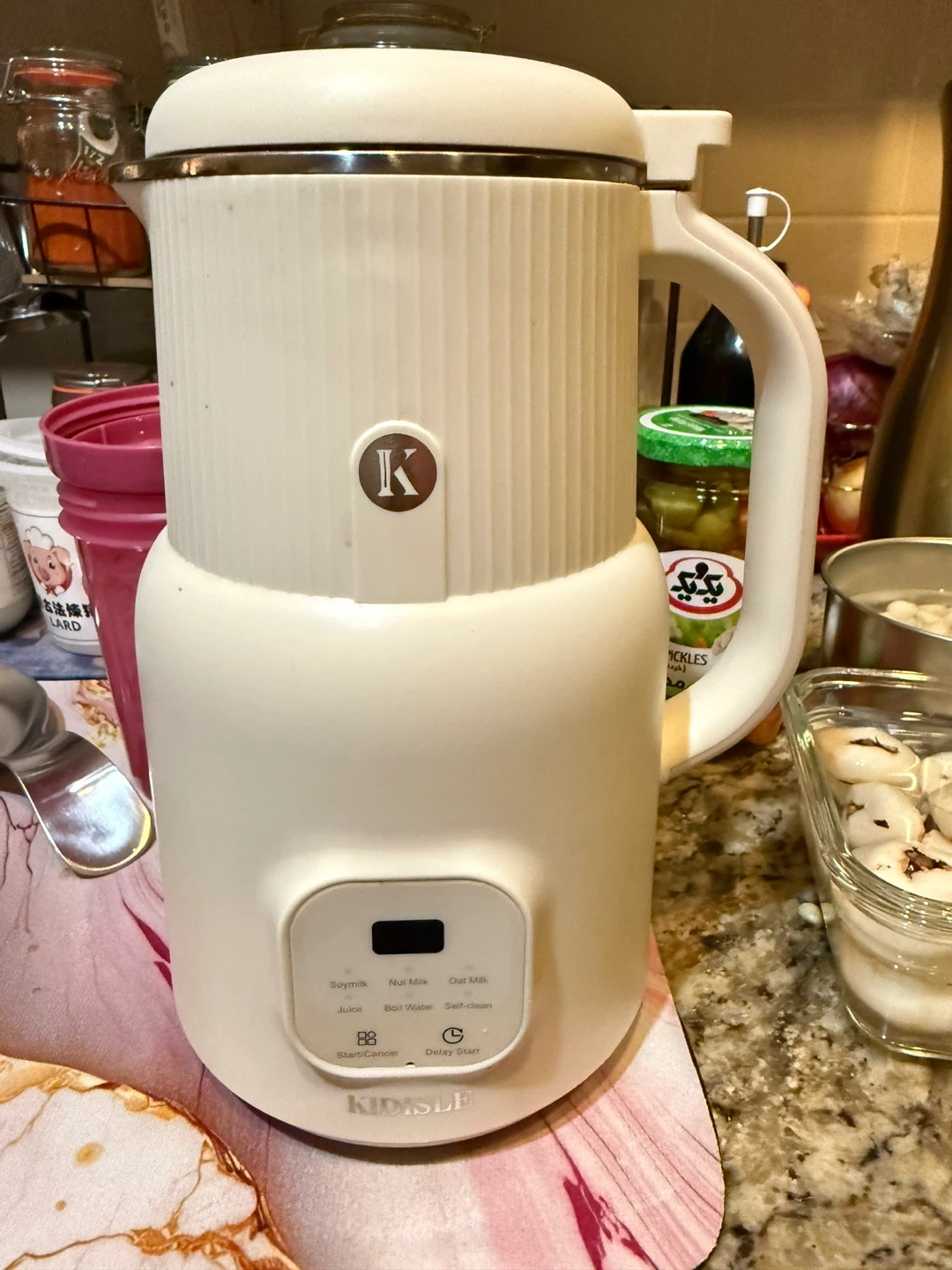 Make soymilk, nut milk, oat milk, and juice with this KIDISLE maker. It also has boil water and self-clean functions. Includes delay start option.