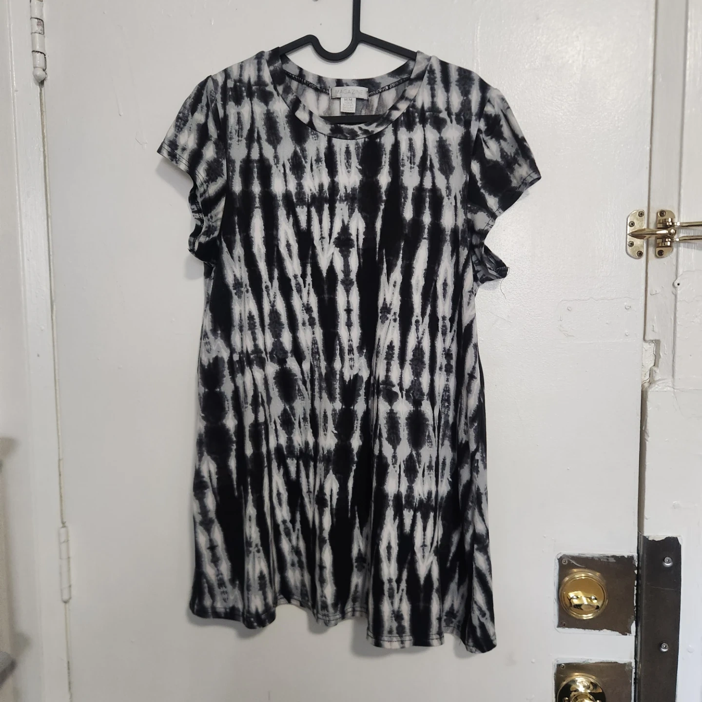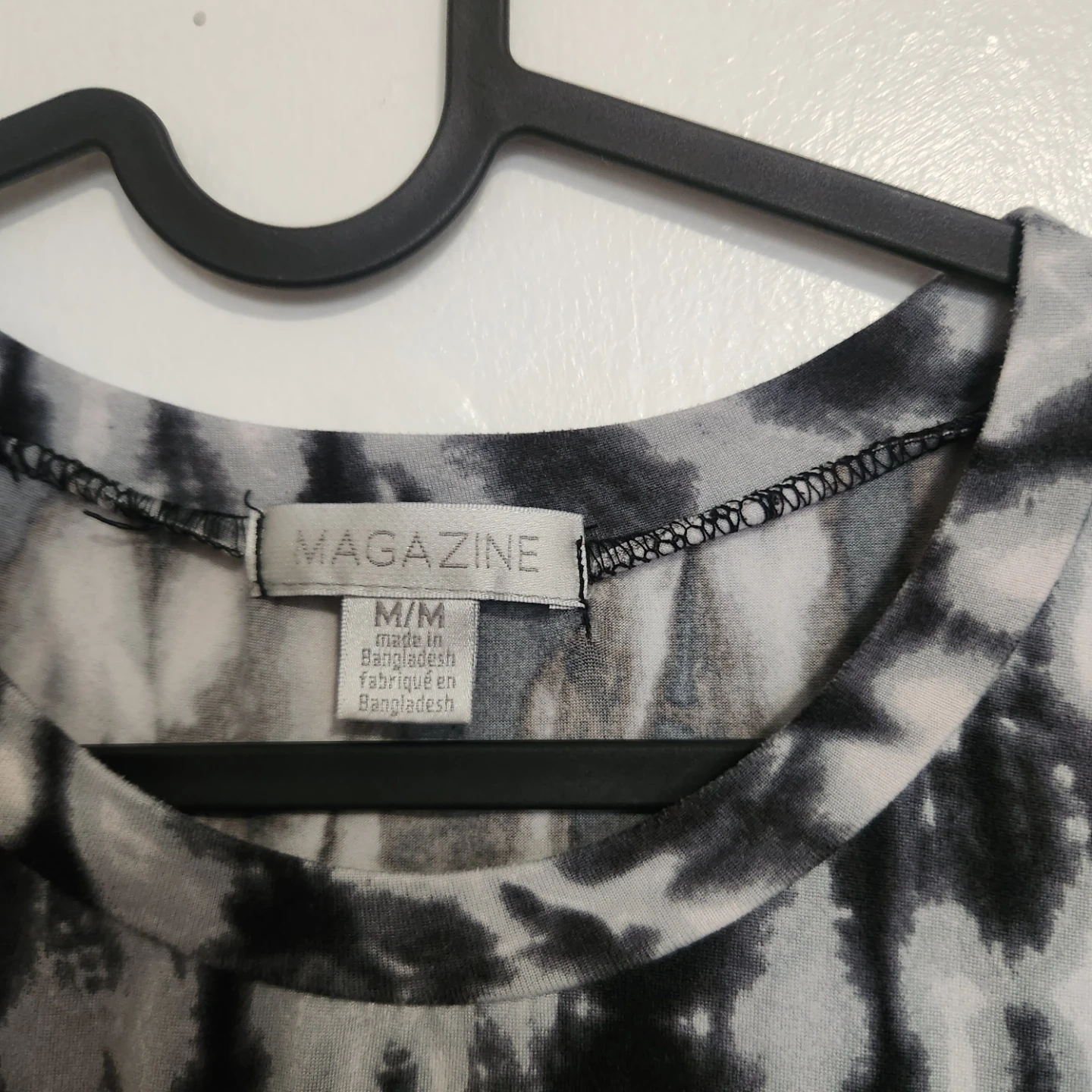 Magazine brand women's t-shirt dress. Features a black and white tie-dye pattern. Size medium.