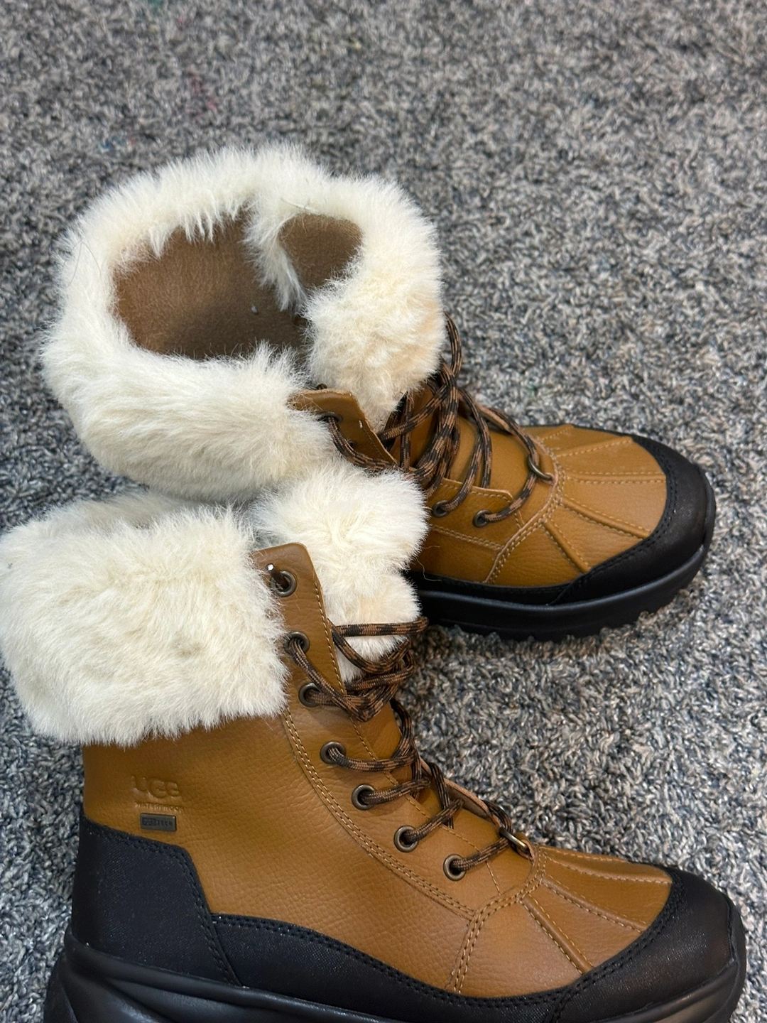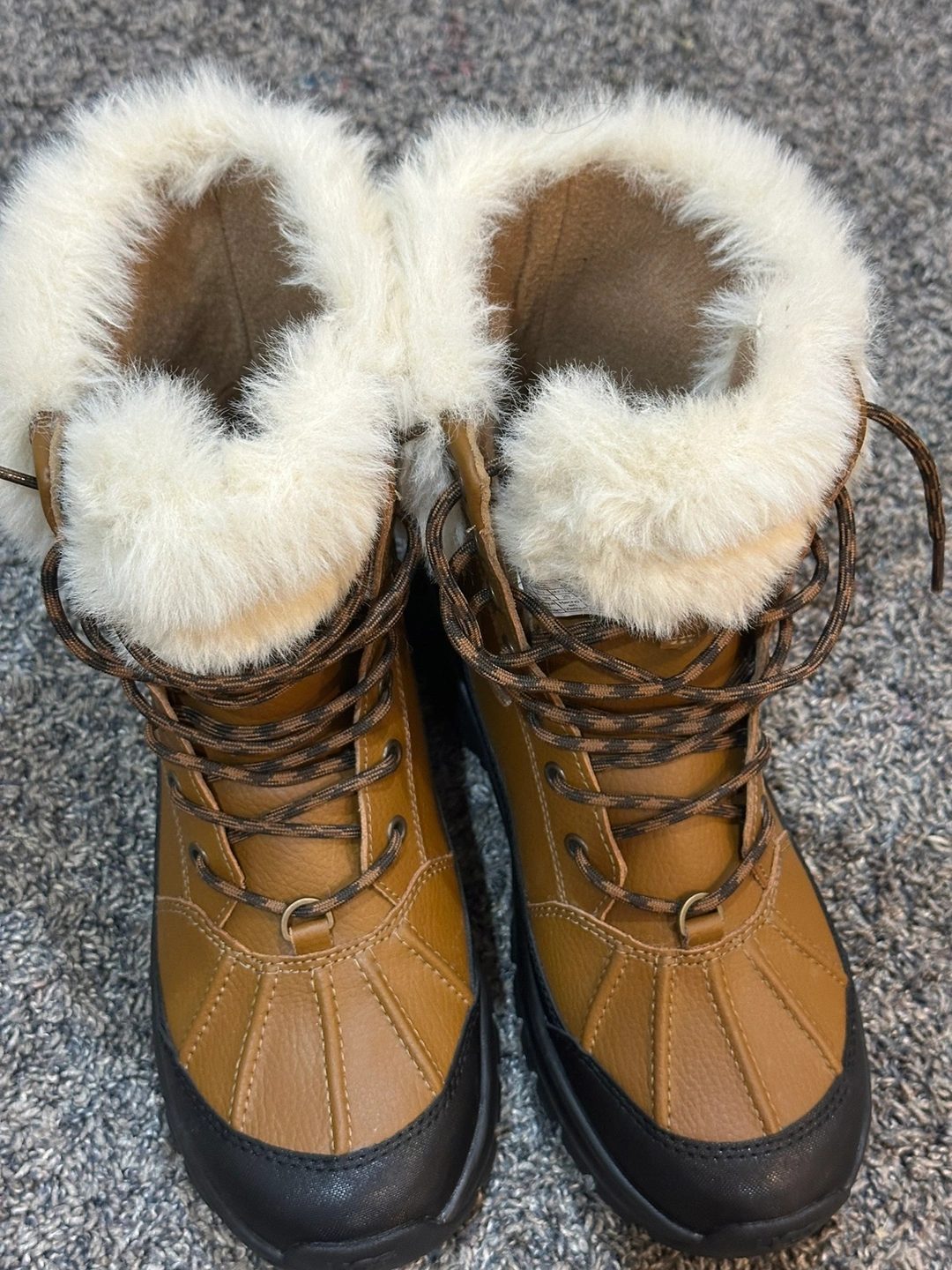 These UGG boots are a great option for keeping your feet warm and dry during the winter months. They are waterproof and have a fur lining for extra warmth. They are in good condition and have been worn only a few times.