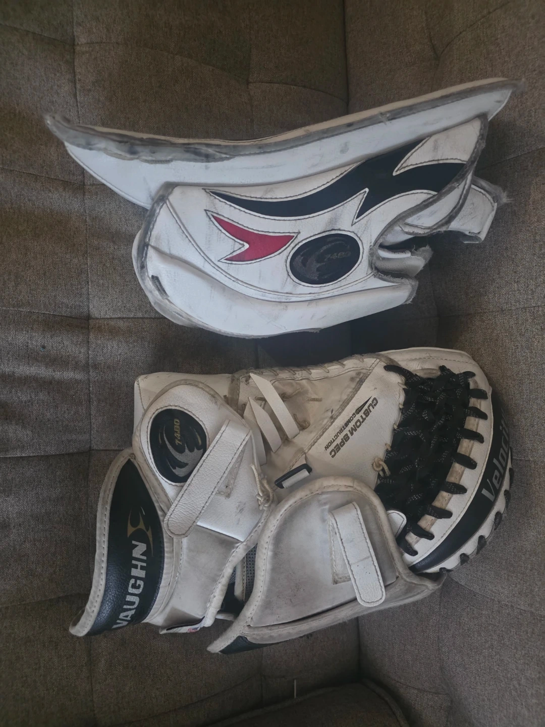 I'm selling a used Vaughn right hand catch goalie glove and blocker set.