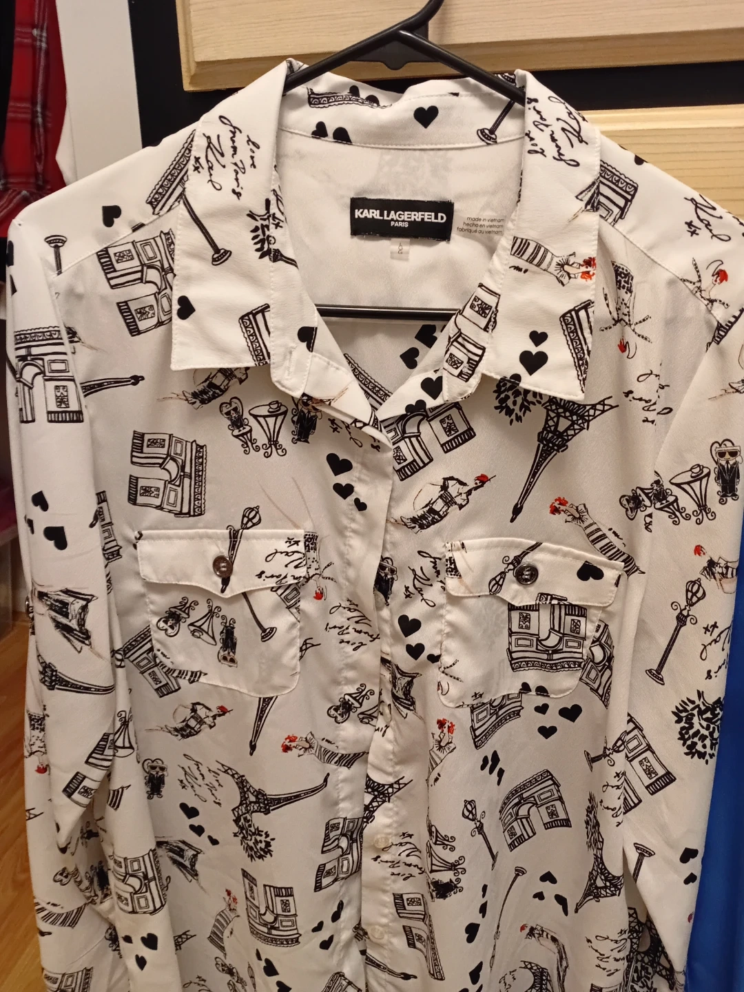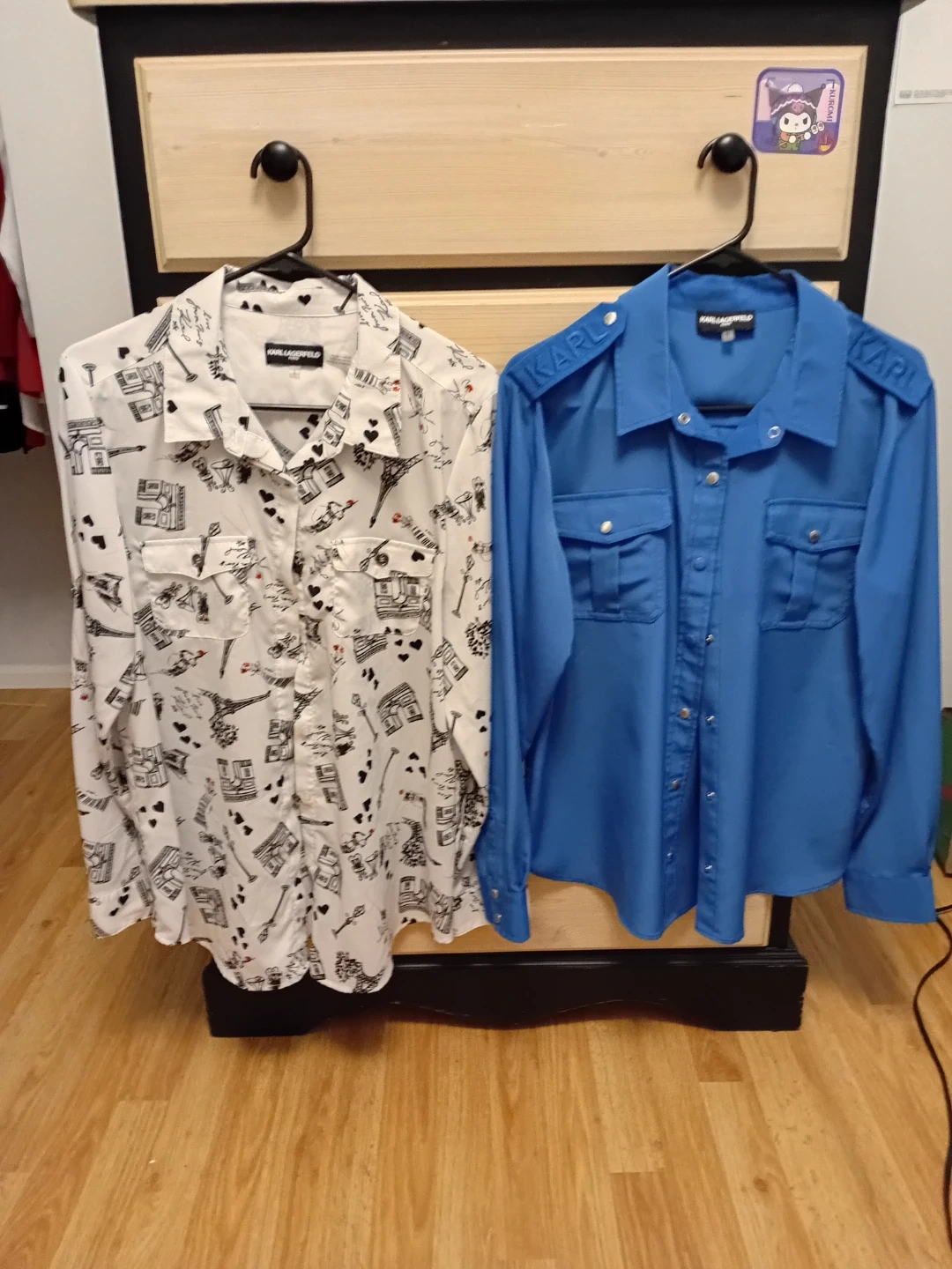Buy & SellKarl Lagerfeld Paris Blouse Size LKarl Lagerfeld Paris Blouse Size L$50Here are two Karl Lagerfeld Paris blouses! One is white with a fun print, and the other is a solid blue. Both are size L. $100 for bothConditionLike newWHERE TO MEETCheck LocationView MapSELLERverifiedVanhBrentwood650 reviews0 chats·1 favorites·9 viewsSEND CHAT TO SELLERHi Vanh! I’m interested in your listing.Hi Vanh! I’m interested in your listing.Get the Karrot app to chatSign In to chat