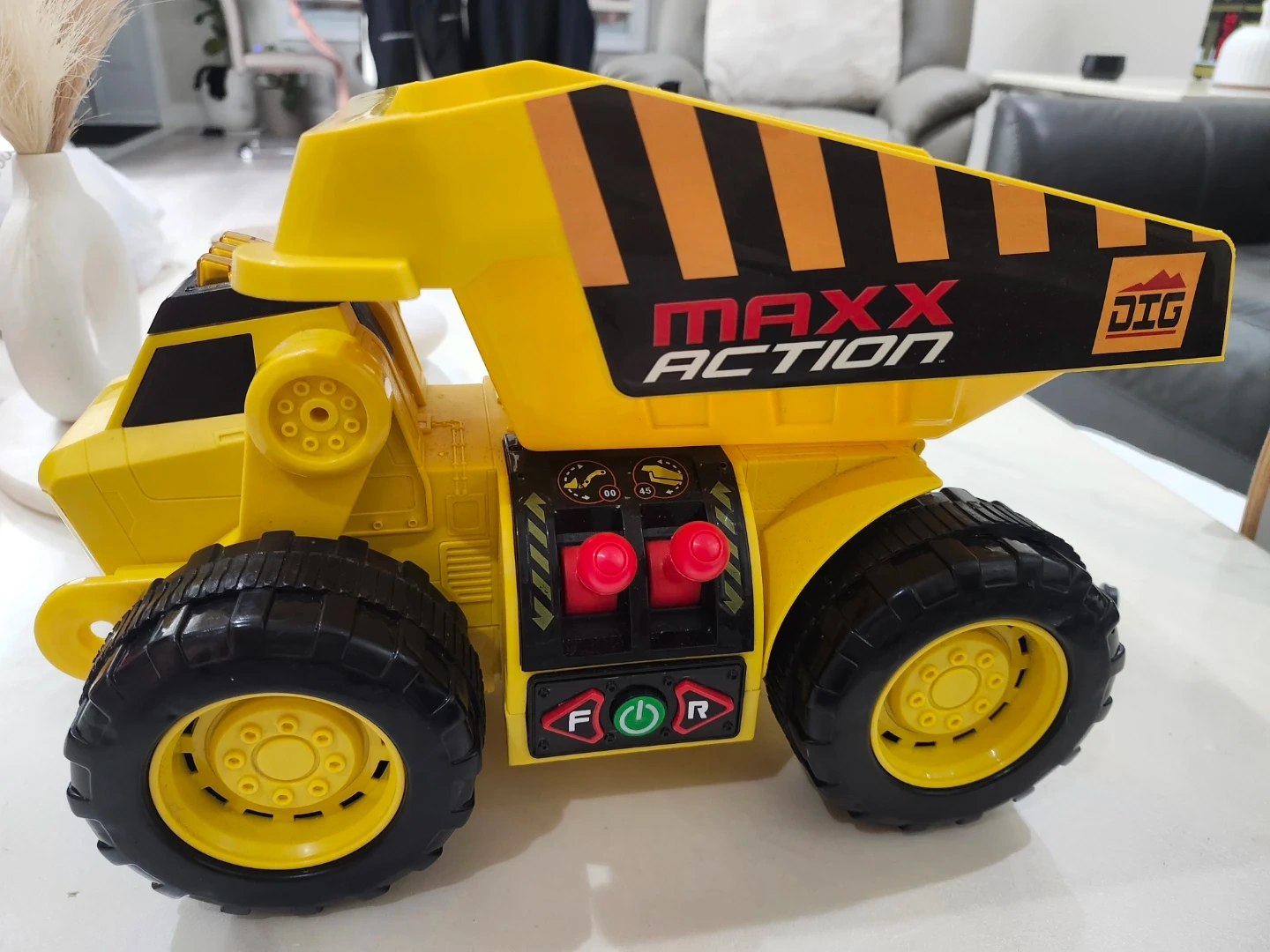 I'm selling a Dig Maxx Action dump truck toy. It's in great condition and ready for a new home! Perfect for kids who love construction vehicles and imaginative play
