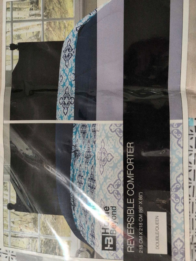 I'm offering a brand new HB Home reversible comforter, designed to fit both double and queen size beds, measuring 218 cm x 218 cm (86" x 86"). This versatile comforter features a stylish reversible design, allowing you to easily switch up the look of your bedroom.
