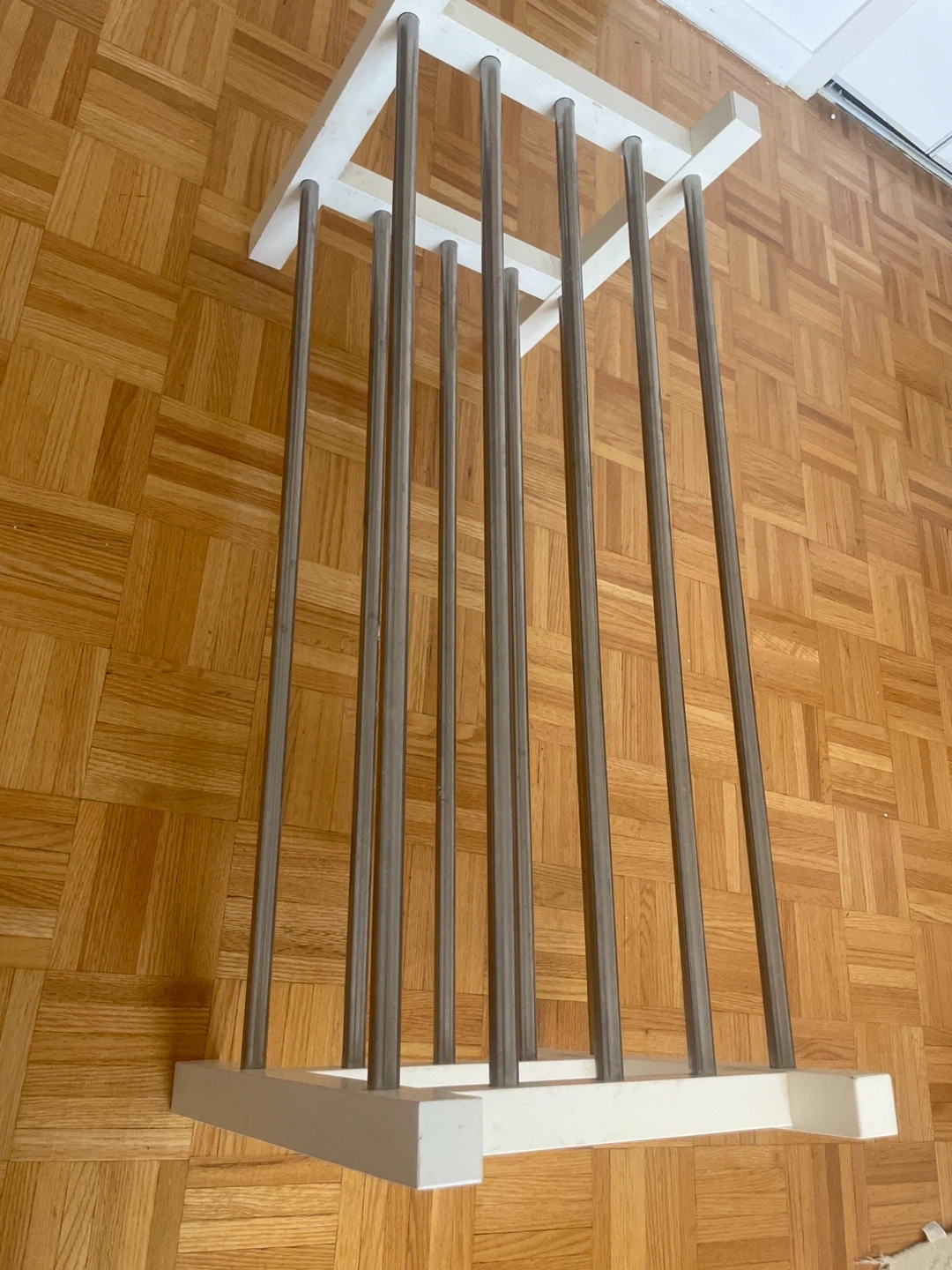 Selling a gently used IKEA Portis shoe rack. It's in great shape and perfect for keeping your entryway organized. The white and silver finish will match any decor. It's a sturdy and reliable piece!
