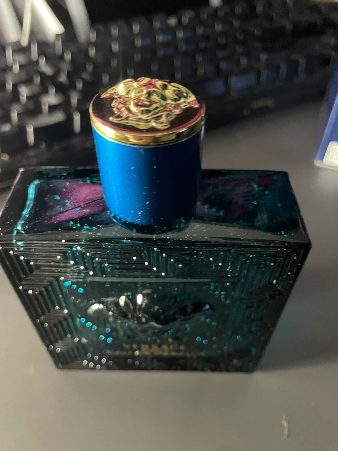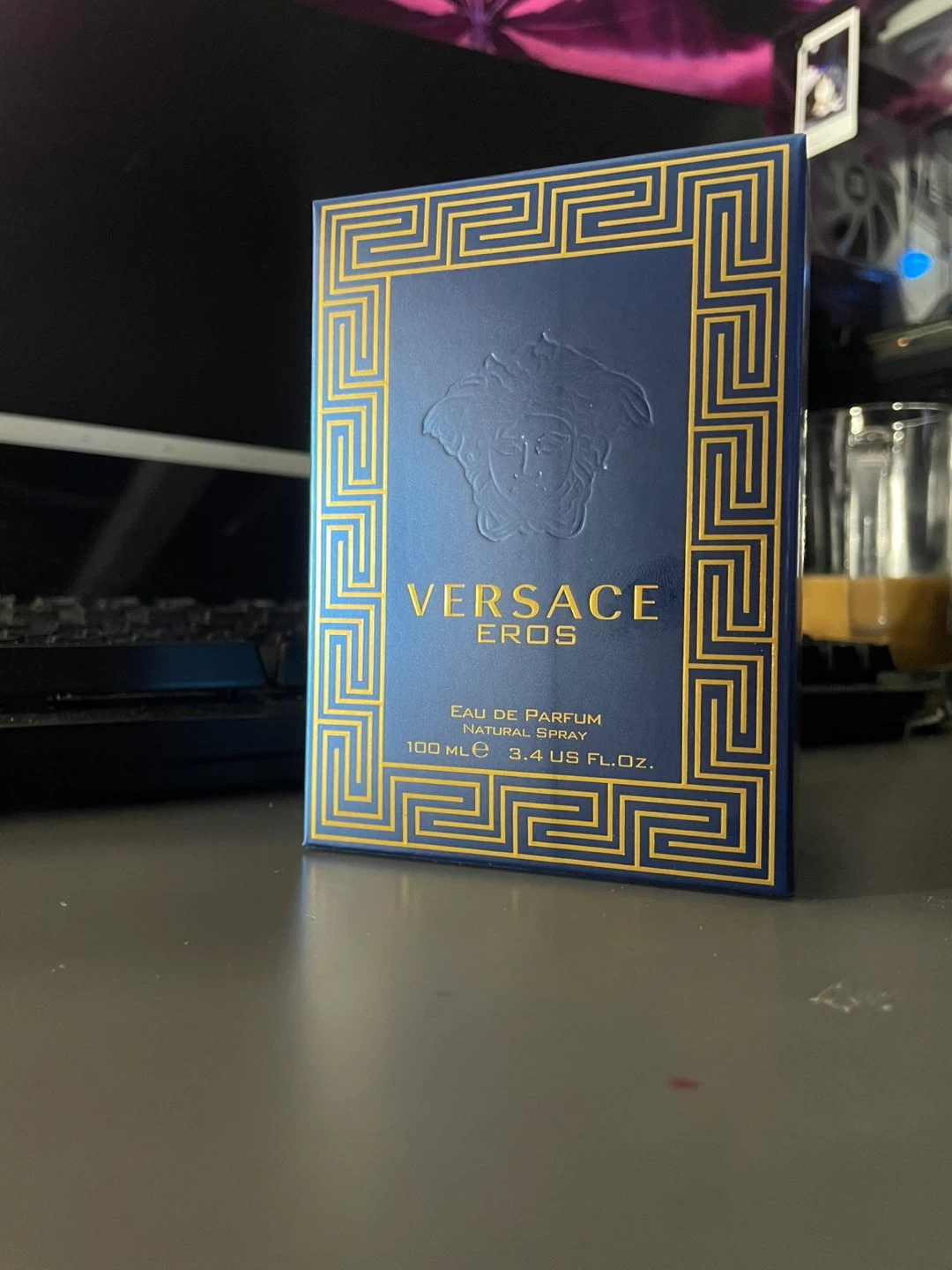 Versace Eros Eau de Parfum for men. Natural spray. This bottle is 100ml, which is 3.4 US fl. oz. It's an Eau de Parfum. Bought never sprayed or opened.
