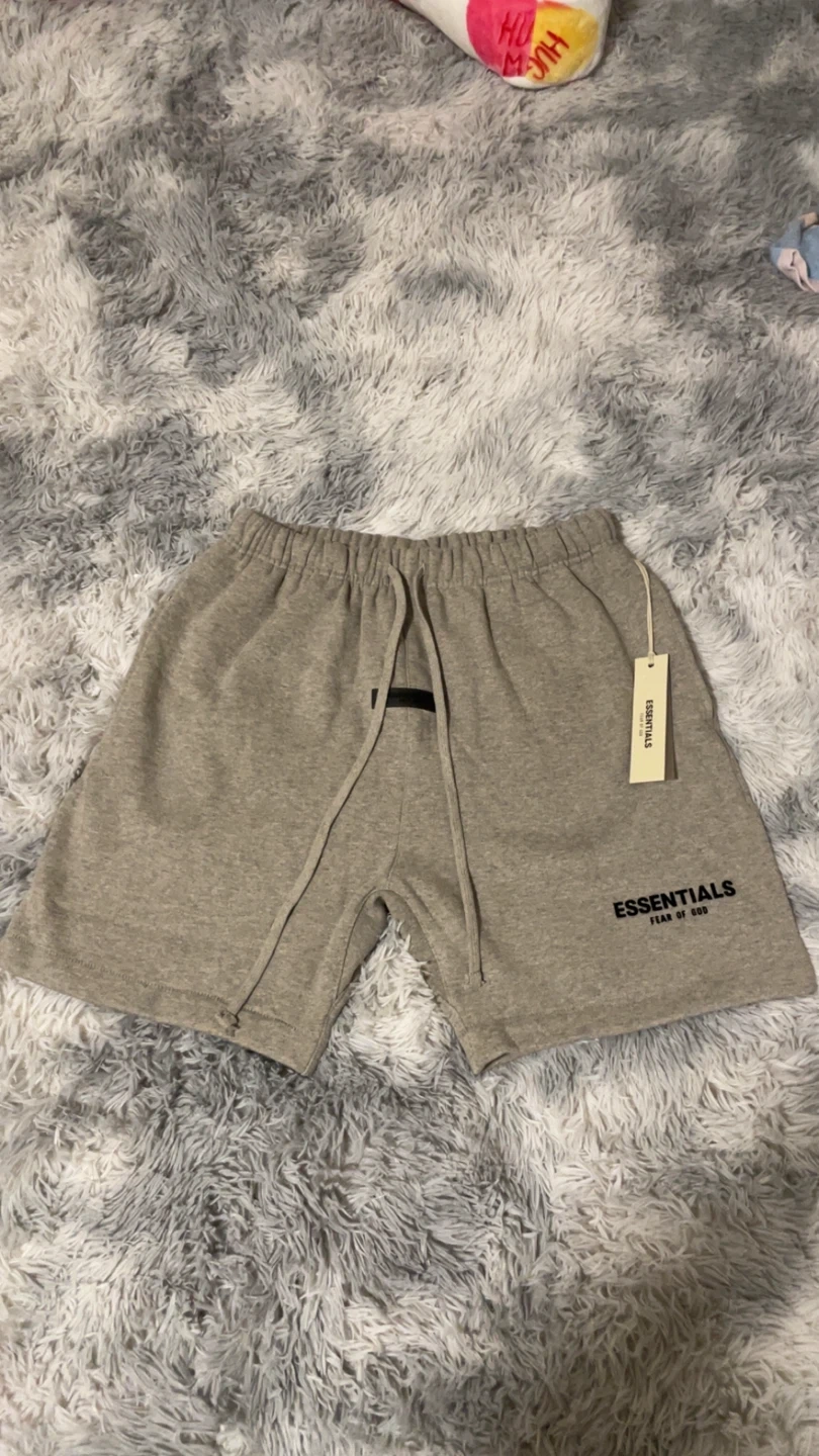ESSENTIALS Fear of God dark oatmeal shorts. Comfortable cotton blend material. Drawstring waist for a custom fit. Includes original dust bag! Smoke free house hold so product has no Oder