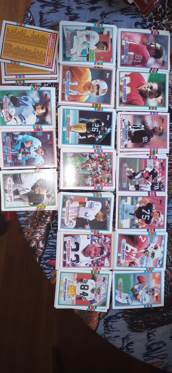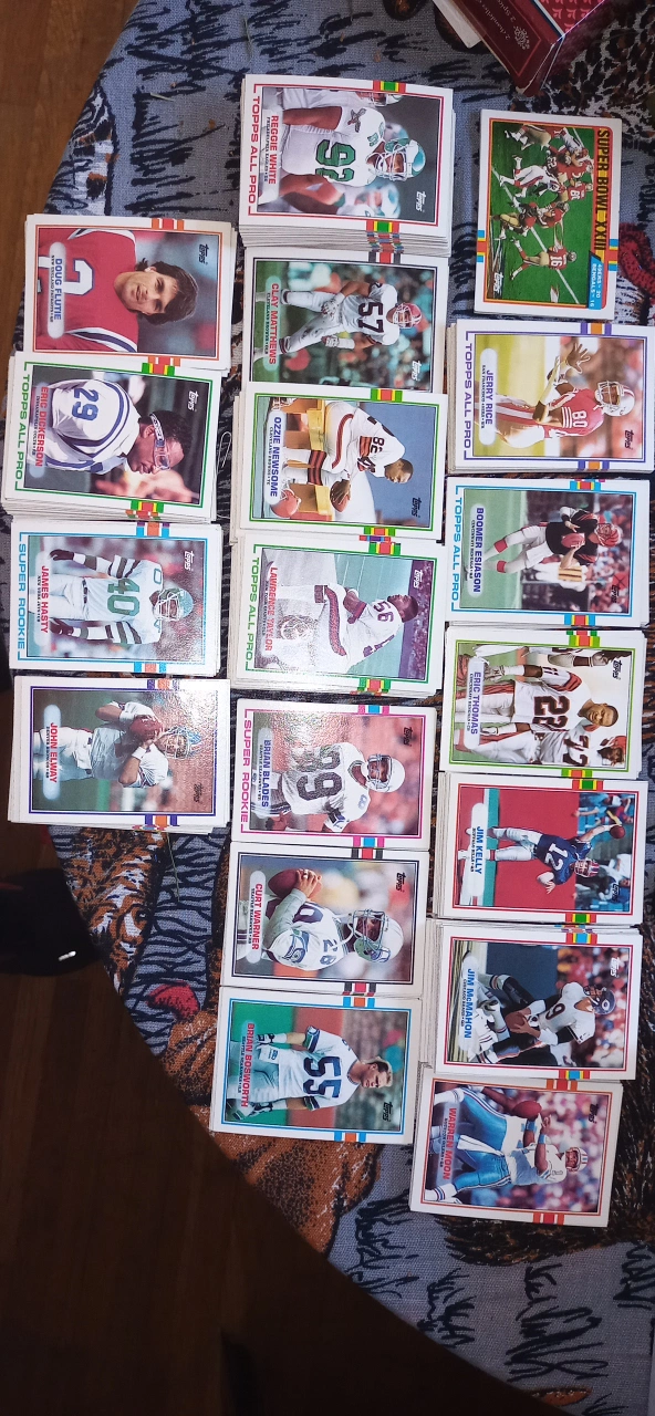 Selling a complete set of 1989 Topps NFL football cards. The set of cards are in like new condition. the year of the rookies. Most of those players are pro bowlers or announcers now. Some of the cards are worth $50+. A lot are are $10 to $20. I don't have time to sell separate. I own over 100,000 cards easy from football, baseball, hockey,college,and basketball from the 1970s to 1995 ish. Need cards? LMK. The more u buy, the cheaper I go. Like gold, they keep appreciating .On line ,this set averages at $250. American.++ Thanks Jim.