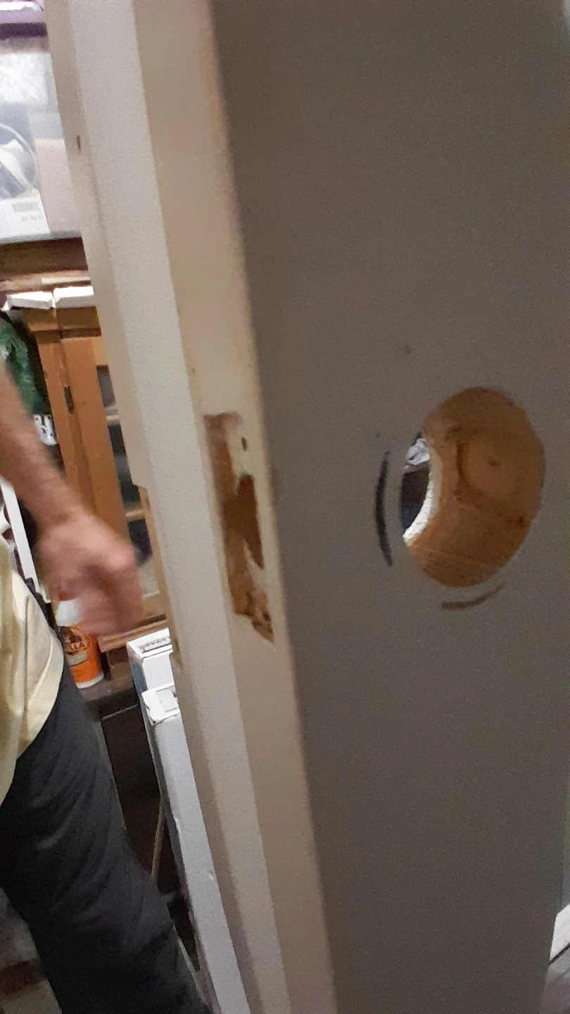 White interior doors with glass panels. Door width approximately 30 inches, height around 80 inches. Comes with pre-drilled hardware holes.
