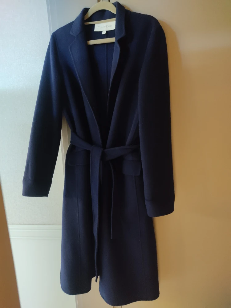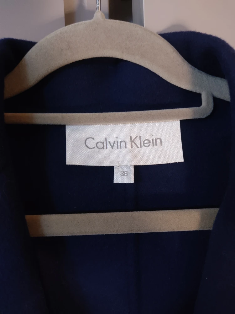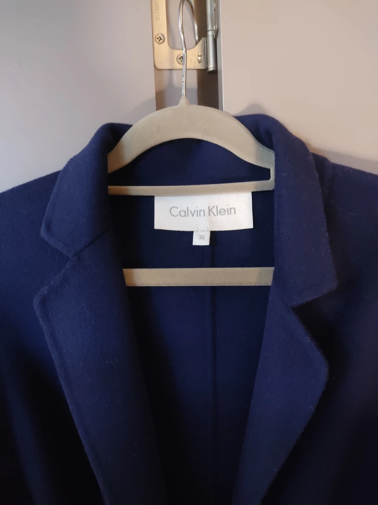 I'm selling a Calvin Klein coat in a beautiful navy colour! It's a size 36. The material is wool 100%. It's in great condition and ready for a new home!