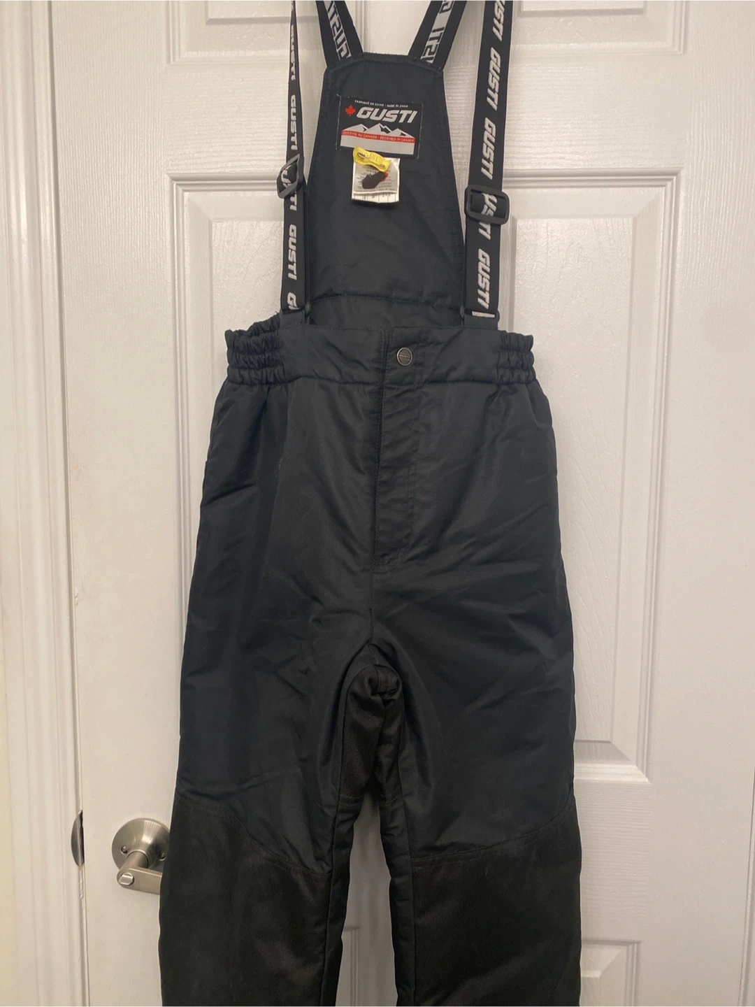 Selling a pair of Gusti snow pants in black! They feature adjustable suspenders for a comfortable fit, perfect for hitting the slopes or enjoying winter activities. Great for keeping warm and dry during snowy days. Size 12