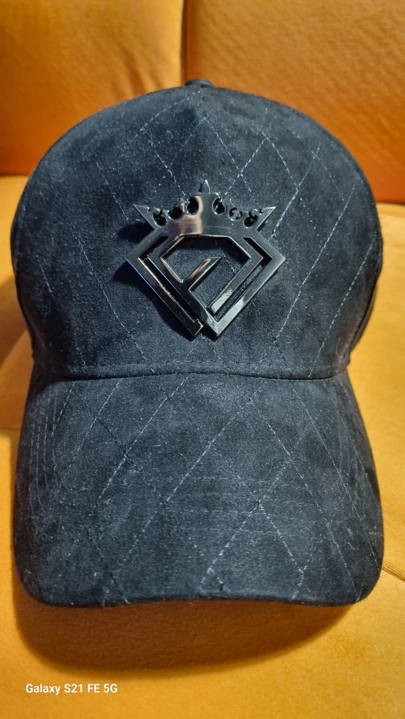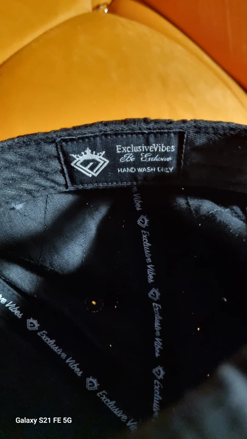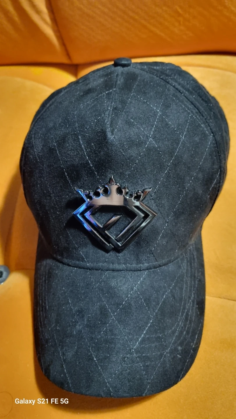 Here's a stylish black baseball cap from Exclusive Vibes. It features a unique crown logo and a quilted pattern. Perfect for adding a touch of flair to any outfit!