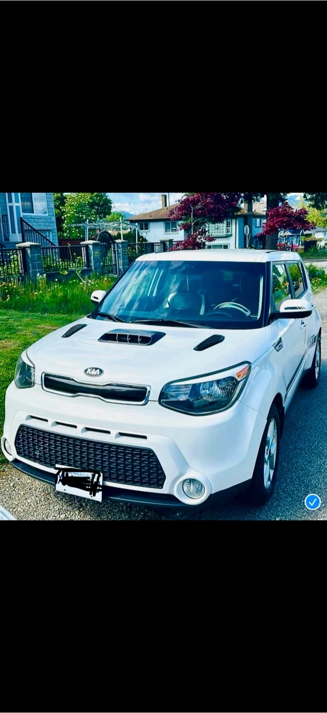 This is a white Kia Soul. It's a four-door hatchback. This vehicle would be useful for commuting or small family trips.