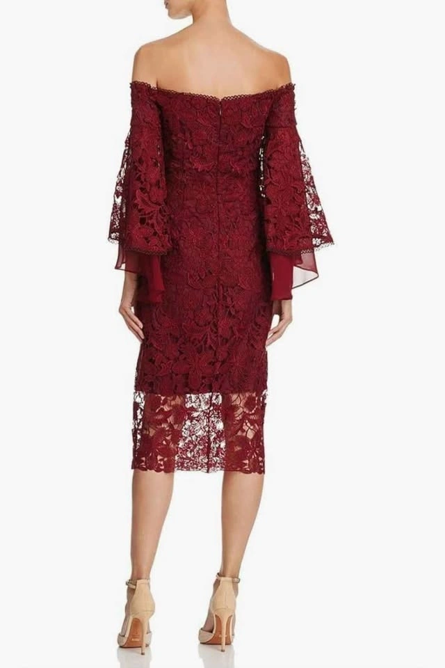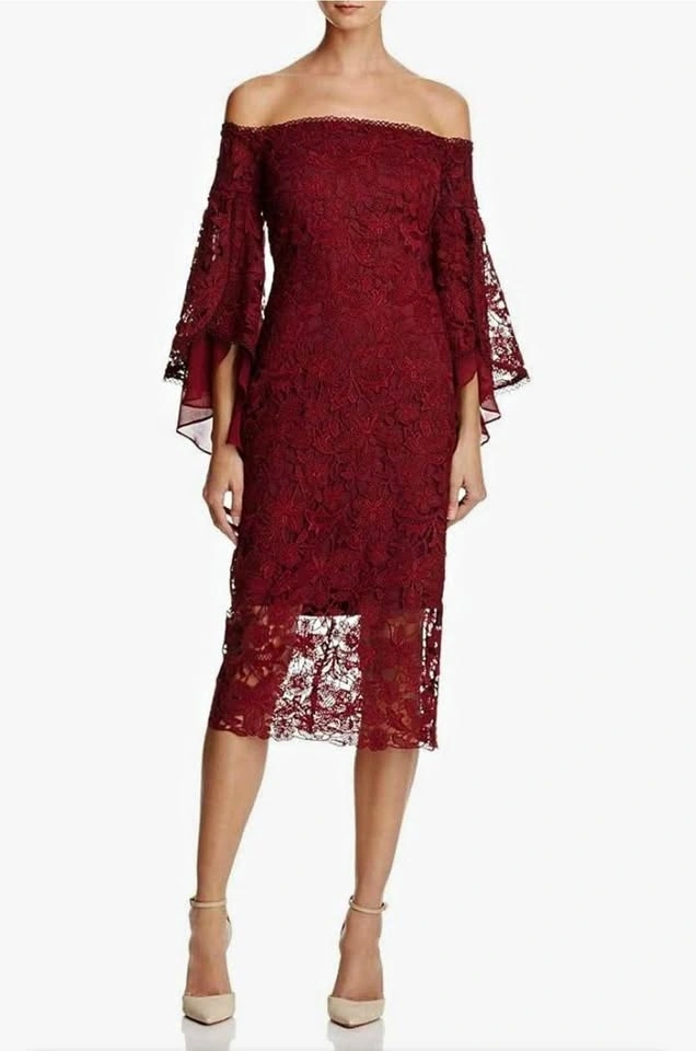 Size 8 Flutter Sleeve Lace Off-Shoulder Wine Cocktail Dress