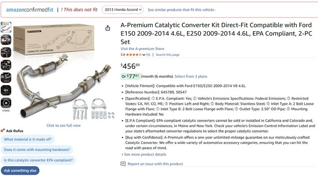A-Premium Catalytic Converter Kit for Ford E150/E250 (2009-2014)