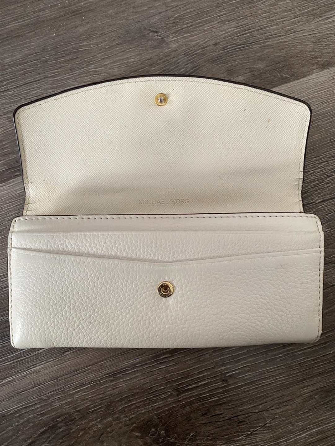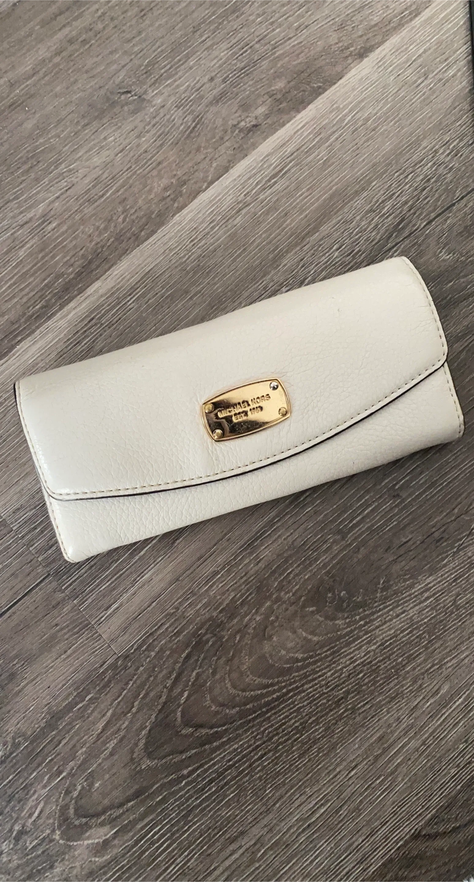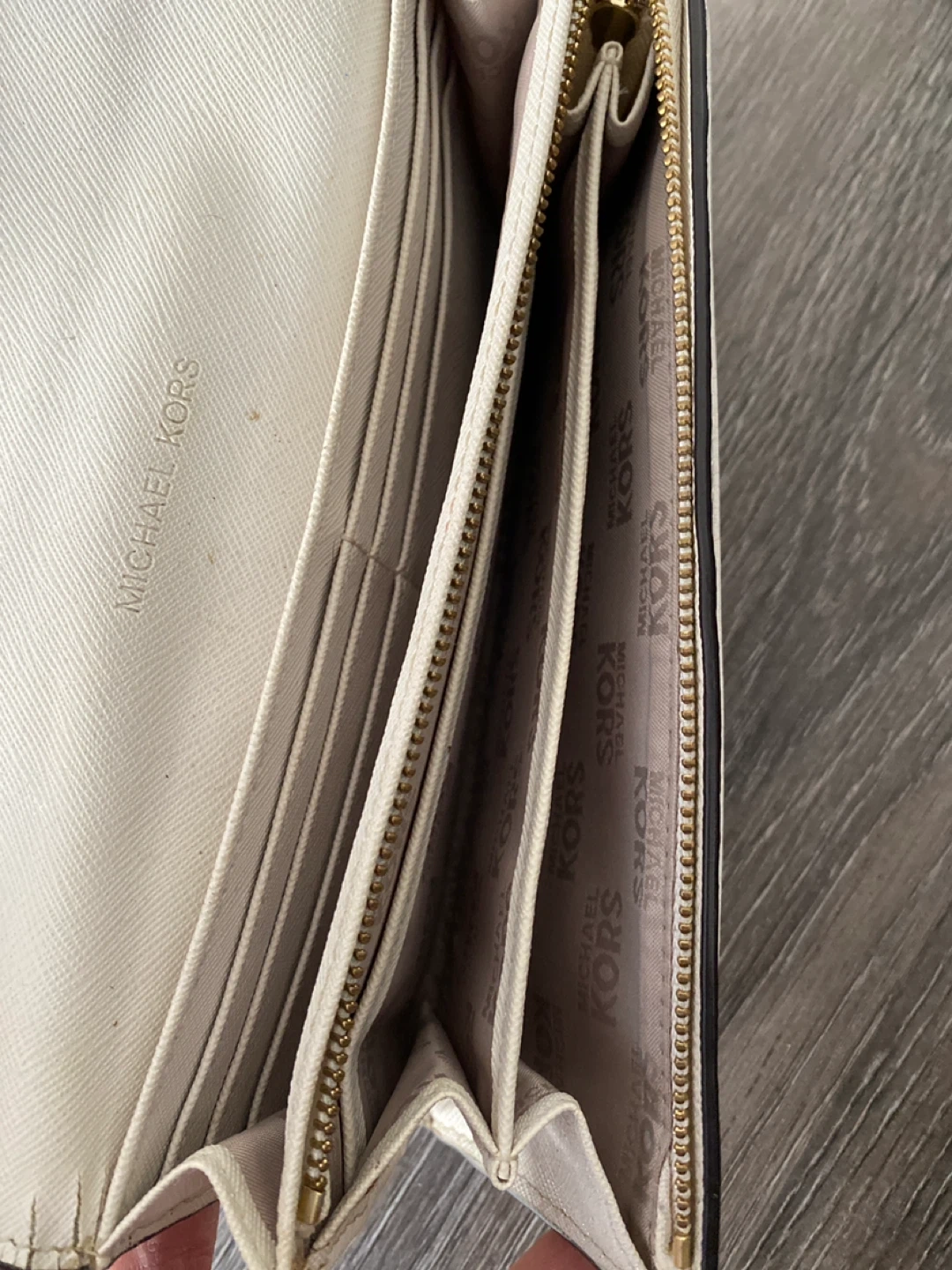 This Michael Kors wallet is made of cream leather. It has multiple compartments for cards and cash. A classic and practical accessory for everyday use!