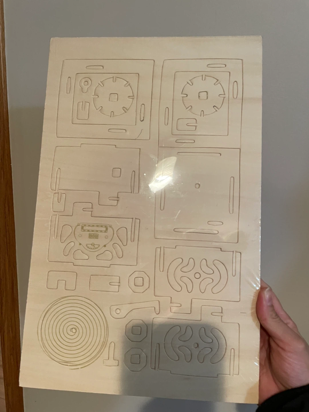 This is a Woodcraft Construction Kit for a gramophone. It's recommended for ages 7 and up. The kit includes pre-cut wooden pieces for assembly.