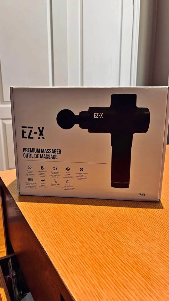 Brand new, never used EZ-X premium massage gun. Retails for over $300, asking $150 or best offer. Main Benefits: • Powerful Percussion Massage • Muscle Relaxation • Supports Recovery • Stress Relief • Improved Flexibility • Customizable Experience – 30 speed settings and 6 interchangeable attachments • Non-Invasive Muscle Care • Portable & Lightweight Features: ᐅ Silent and powerful motor ᐅ Modern smart high percussion technology ᐅ Easy Grip Hand Held Design ᐅ Intelligent Cooling System ᐅ 30 Speed Levels ᐅ 6 Interchangable Attachment Heads ᐅ Powerfull Motor - Stall Force 55lbs ᐅ Silent Motor - 20-60db What's Included: 1 x Massage Gun 1 x 2500mAh rechargeable battery 1 x SmartCharge AC/DC adapter 4 x Replacement rubbers 6 x Massage attachment heads 1 x Protective Travel Case 1 x User guide