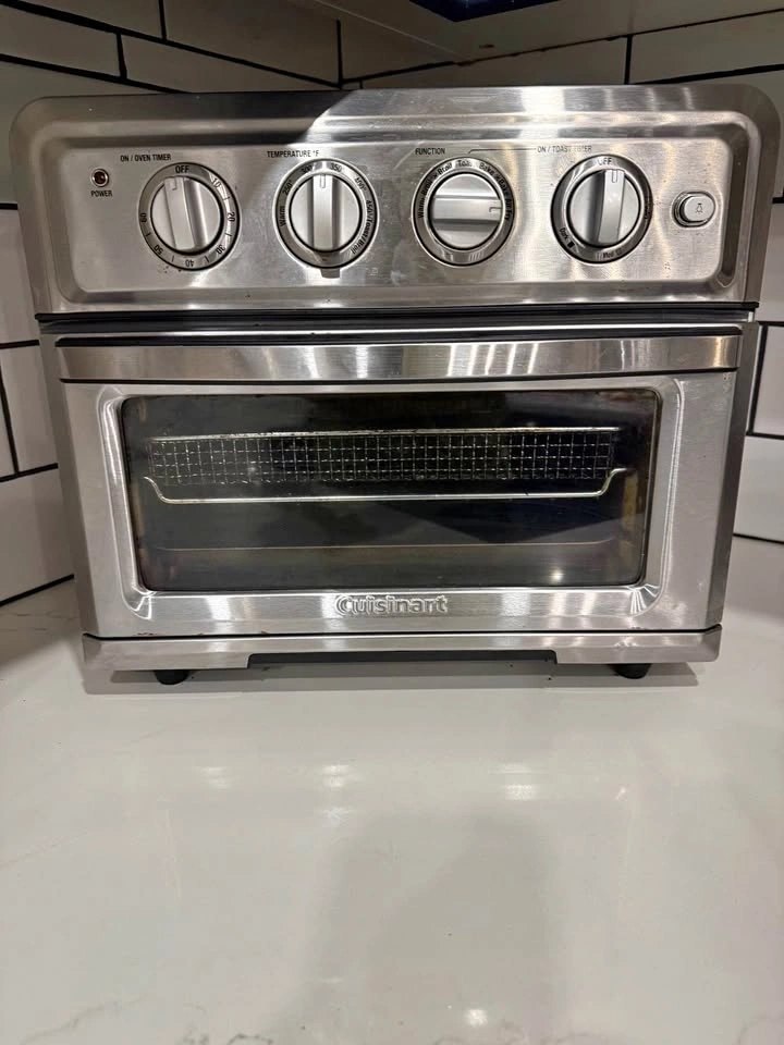 Selling a Cuisinart air fryer toaster oven in excellent condition. Barely used and works perfectly — great for quick, healthier meals with less oil. This is a versatile all-in-one unit that replaces multiple appliances. Features: Air fry, bake, broil, toast, and warm functions. Adjustable temperature control. Built-in timer with auto shut-off. Large capacity (fits multiple servings). Stainless steel finish. Perfect for crispy fries, chicken, veggies, or everyday cooking without heating up your full oven. Clean, well maintained, and ready to use. Pickup in Kitchener.