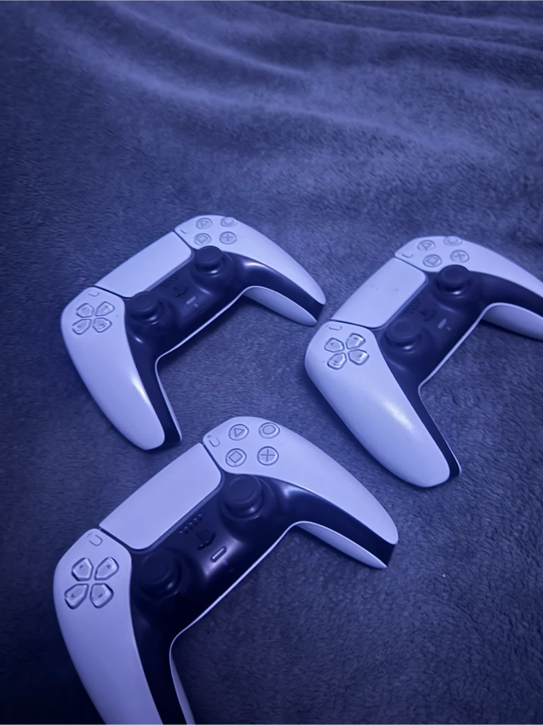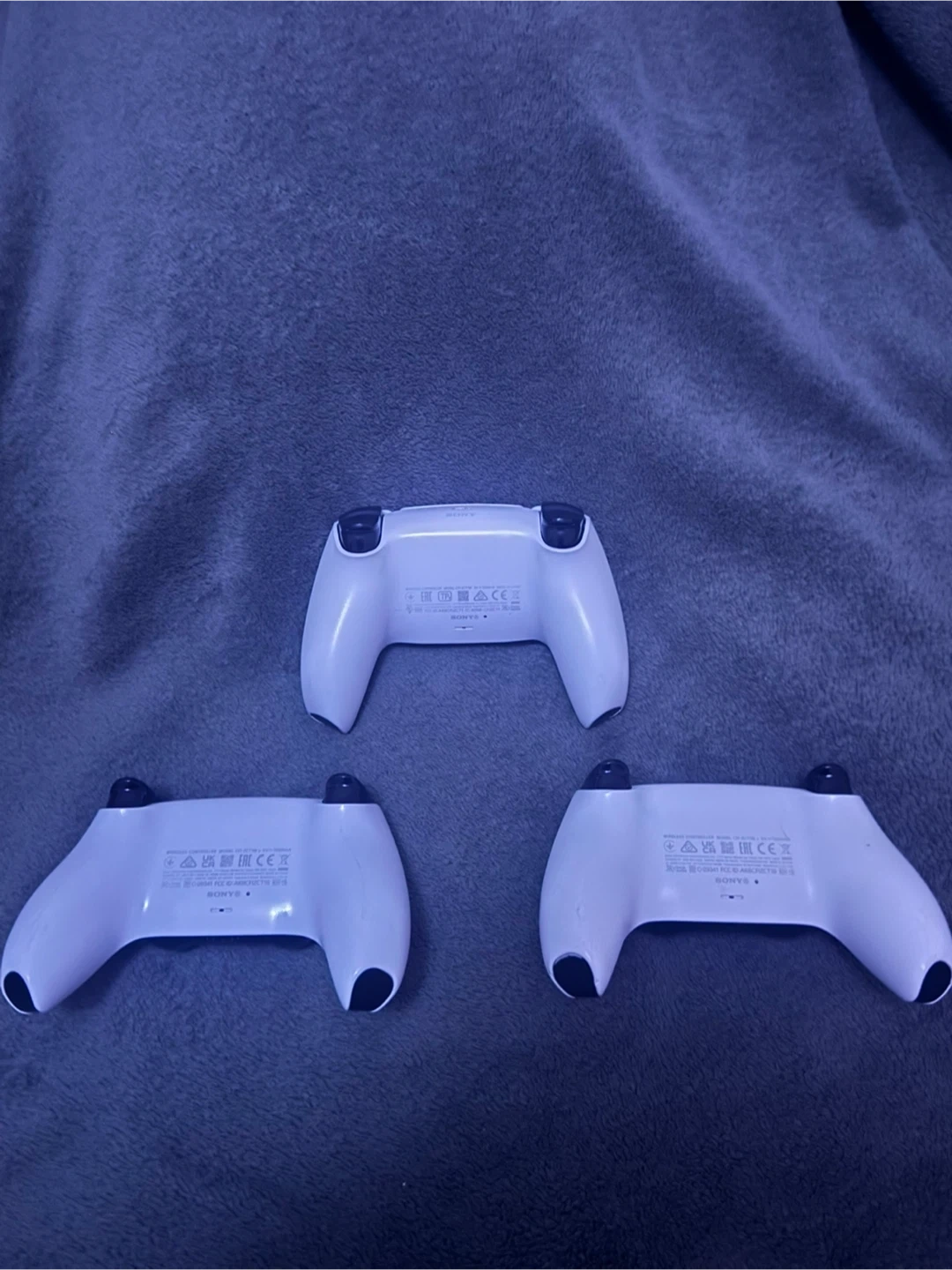Selling three white Sony DualSense wireless controllers for the PlayStation 5. Lightly used with some very small scuffs.