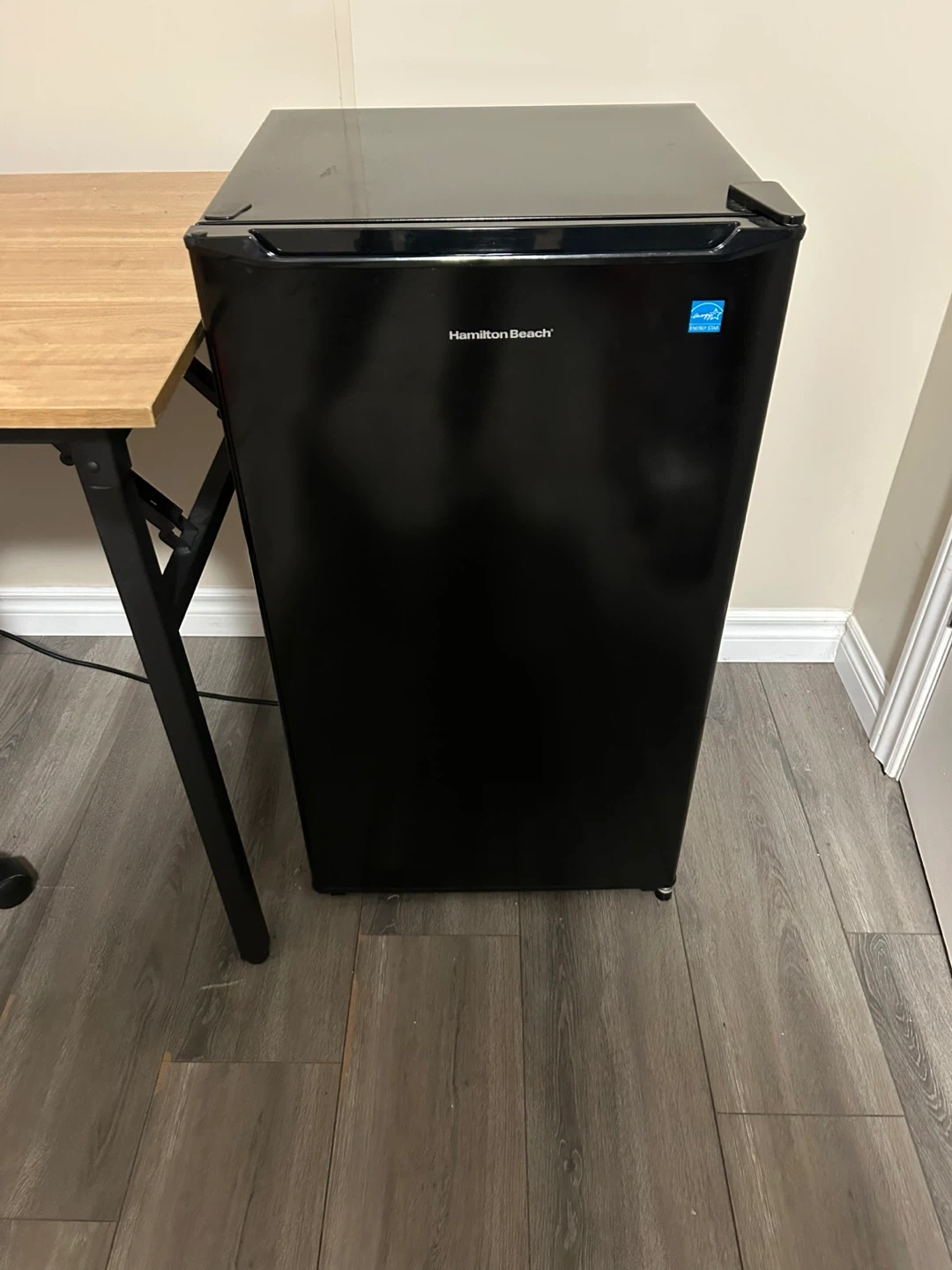 This Hamilton Beach mini fridge is black and perfect for keeping drinks or snacks cool. It's compact and features adjustable shelving for flexible storage. Great for dorm rooms or small offices!