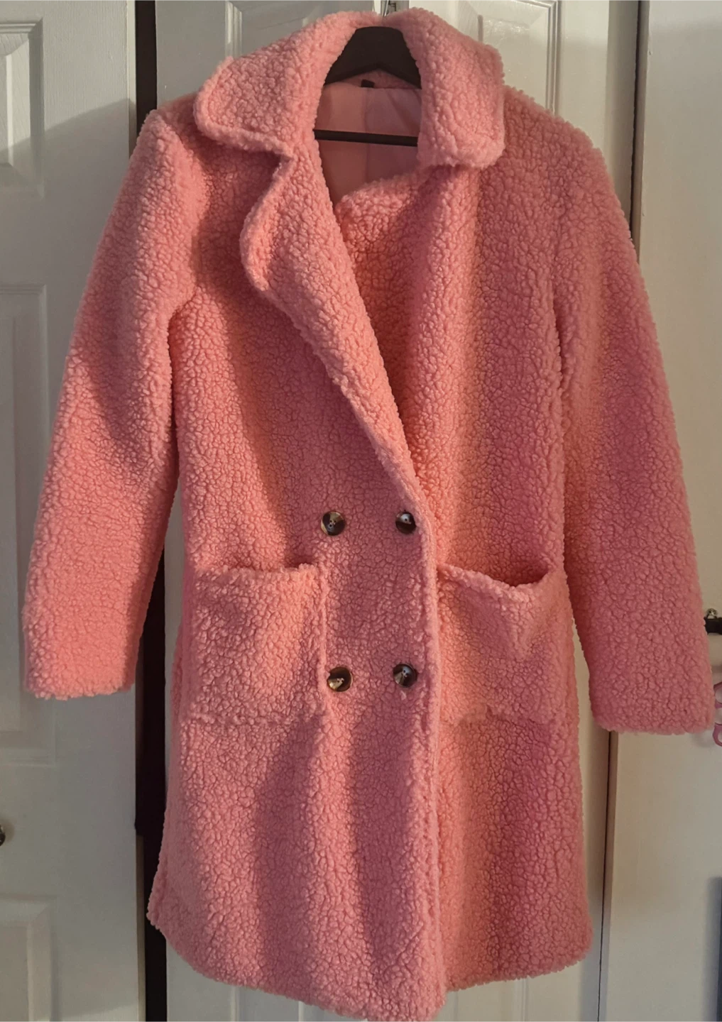 Brand New . Selling a cozy pink teddy coat. Woman’s Smal. It's in great condition and perfect for keeping warm on chilly days