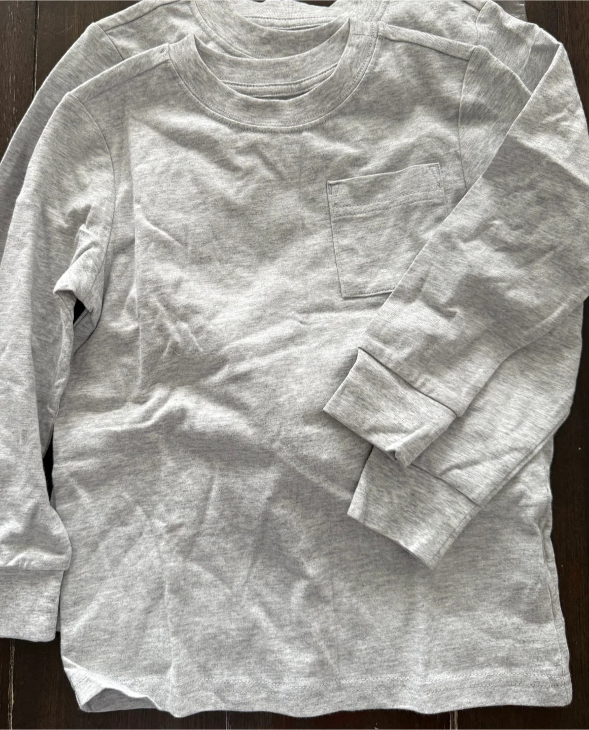 2 New Grey long sleeve shirt by Amazon Essentials. Size 4T. Cotton blend material. Comes with a chest pocket.