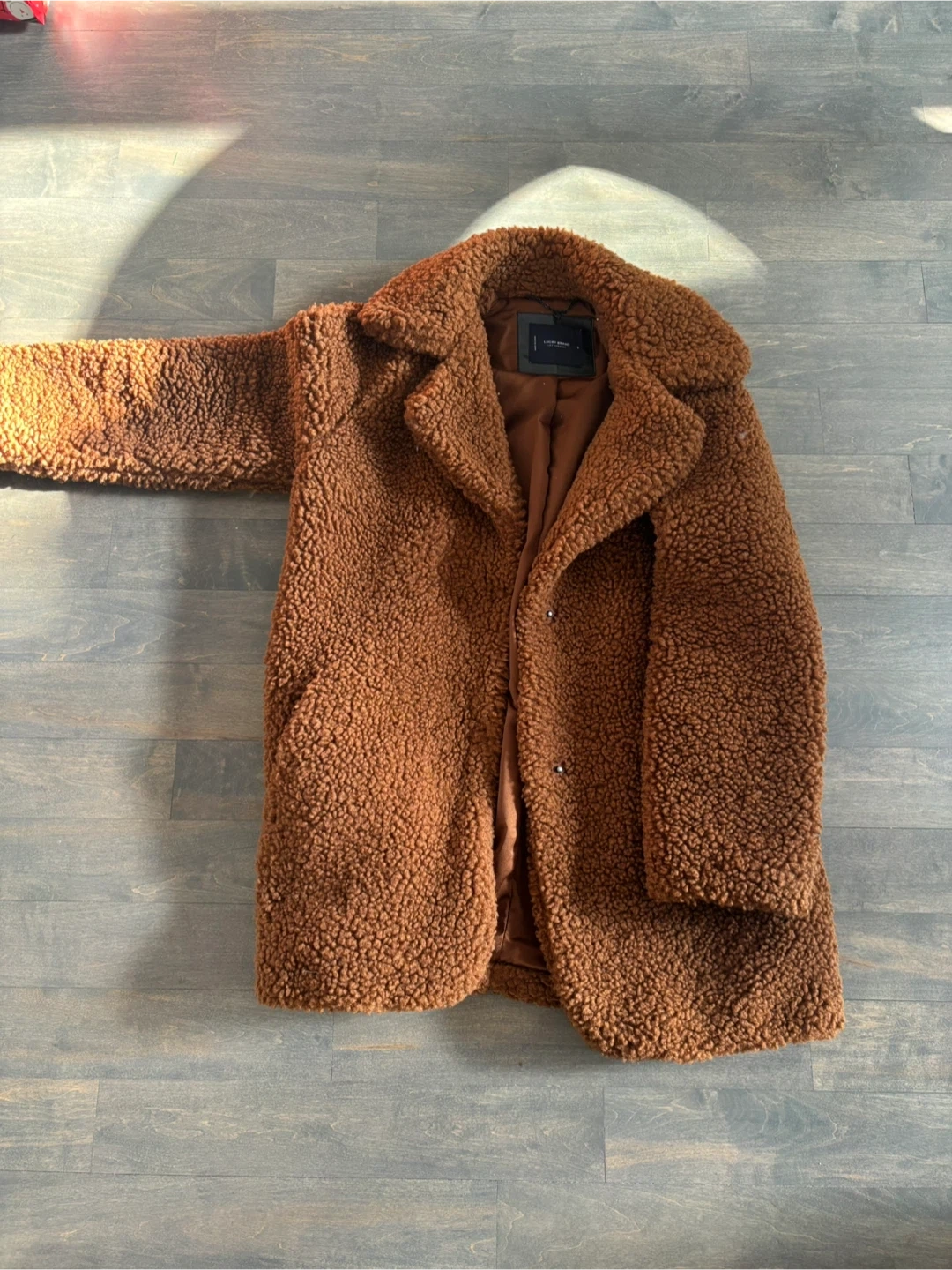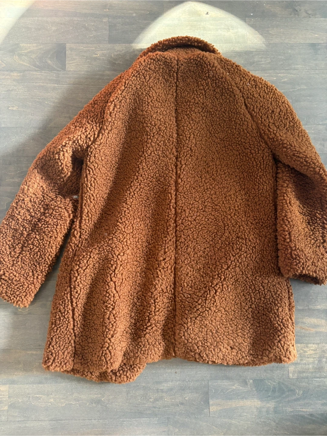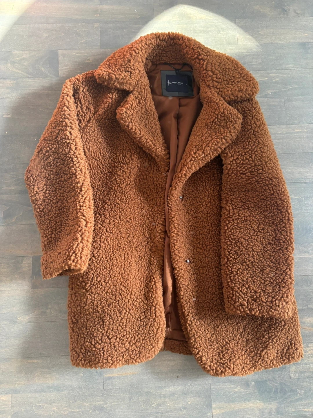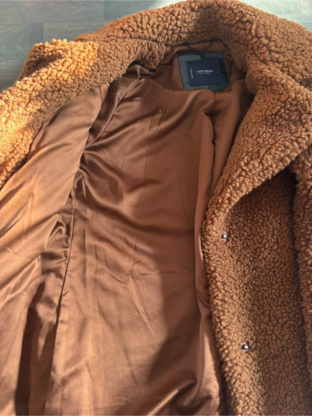 Women’s lucky brand brown Sherpa long coat -Small $55