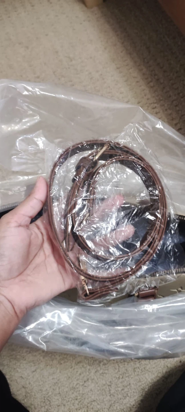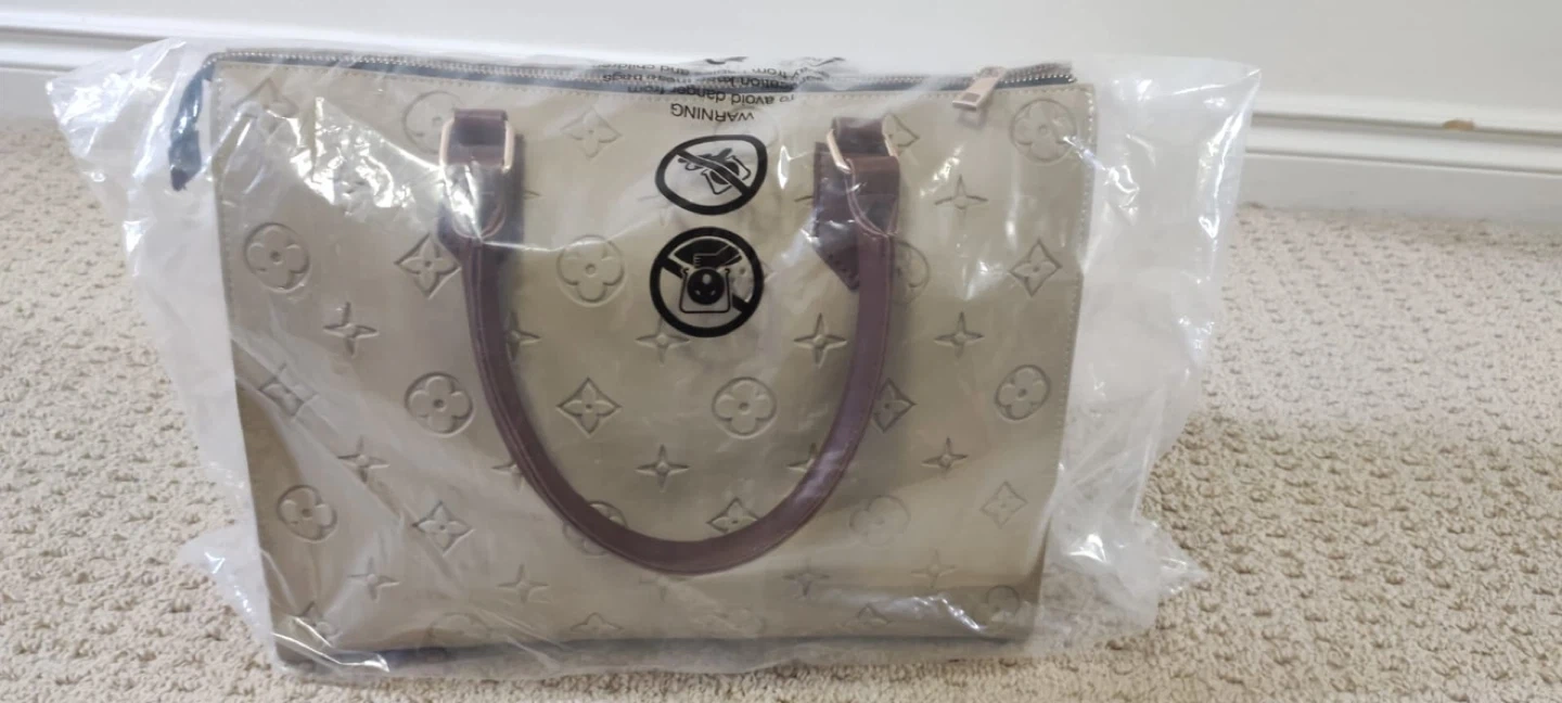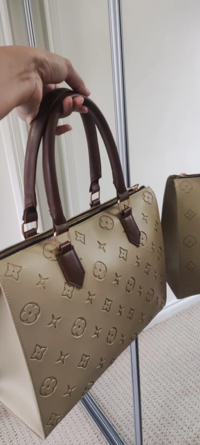 Elevate your style with this vibrant and beautiful design handbag featuring a sleek brown handle and strap.