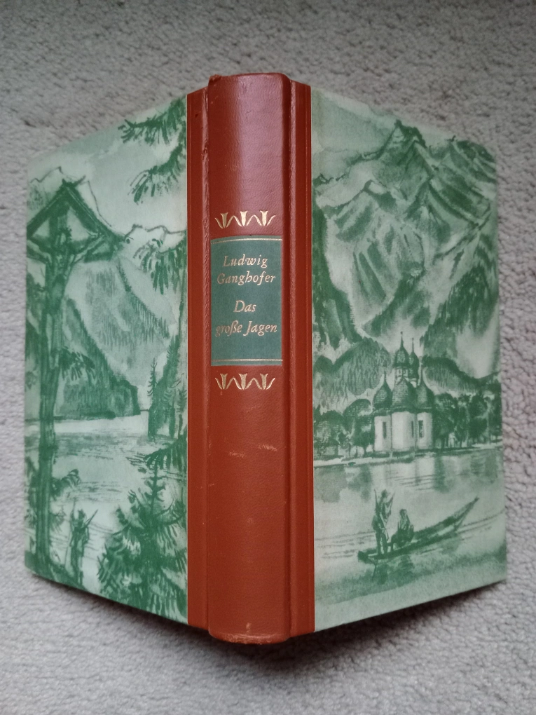 Collection of three vintage hardback books by Ludwig Ganghofer. Titles include: Das grosse Jagen, Der Dorfapostel, and Schloss Hubertus. Illustrated covers. German language.