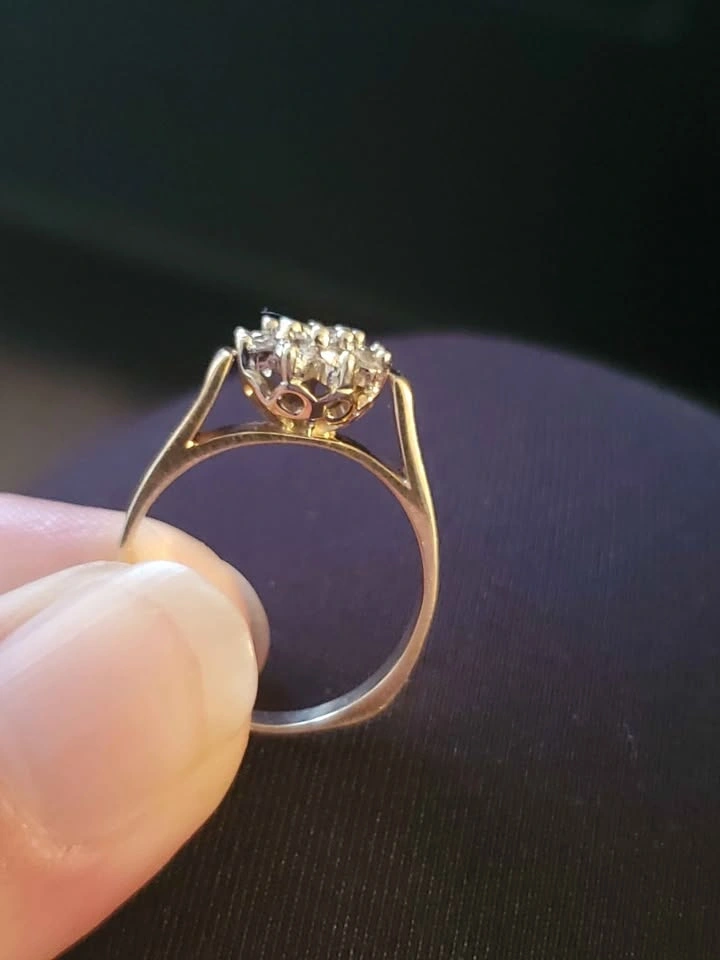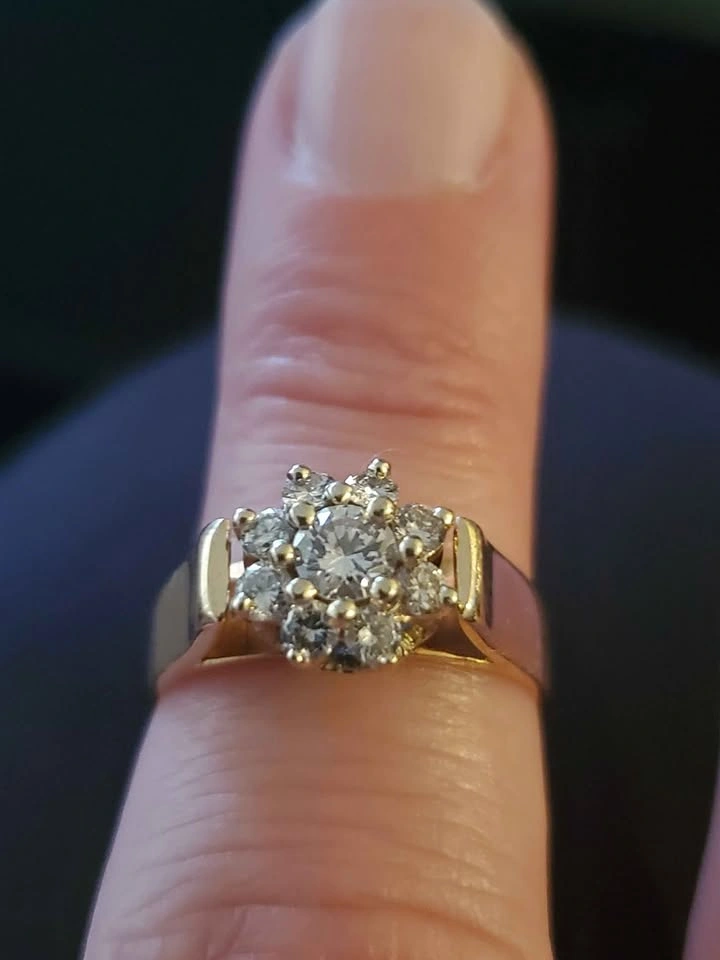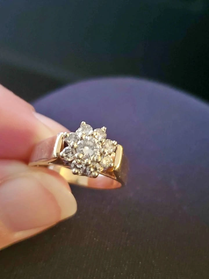 Buy & Sell14k Gold Flower Ring - Size 714k Gold Flower Ring - Size 7$1,500Beautiful 14 karat gold flower ring with .65 total diamonds (1 @ .25ct, 8 @ .05ct). Size 7.WHERE TO MEETCheck LocationView MapSELLER174374Secord Woods100 reviews0 chats·0 favorites·27 viewsSEND CHAT TO SELLERHi 174374! I’m interested in your listing.Hi 174374! I’m interested in your listing.Get the Karrot app to chatSign In to chat