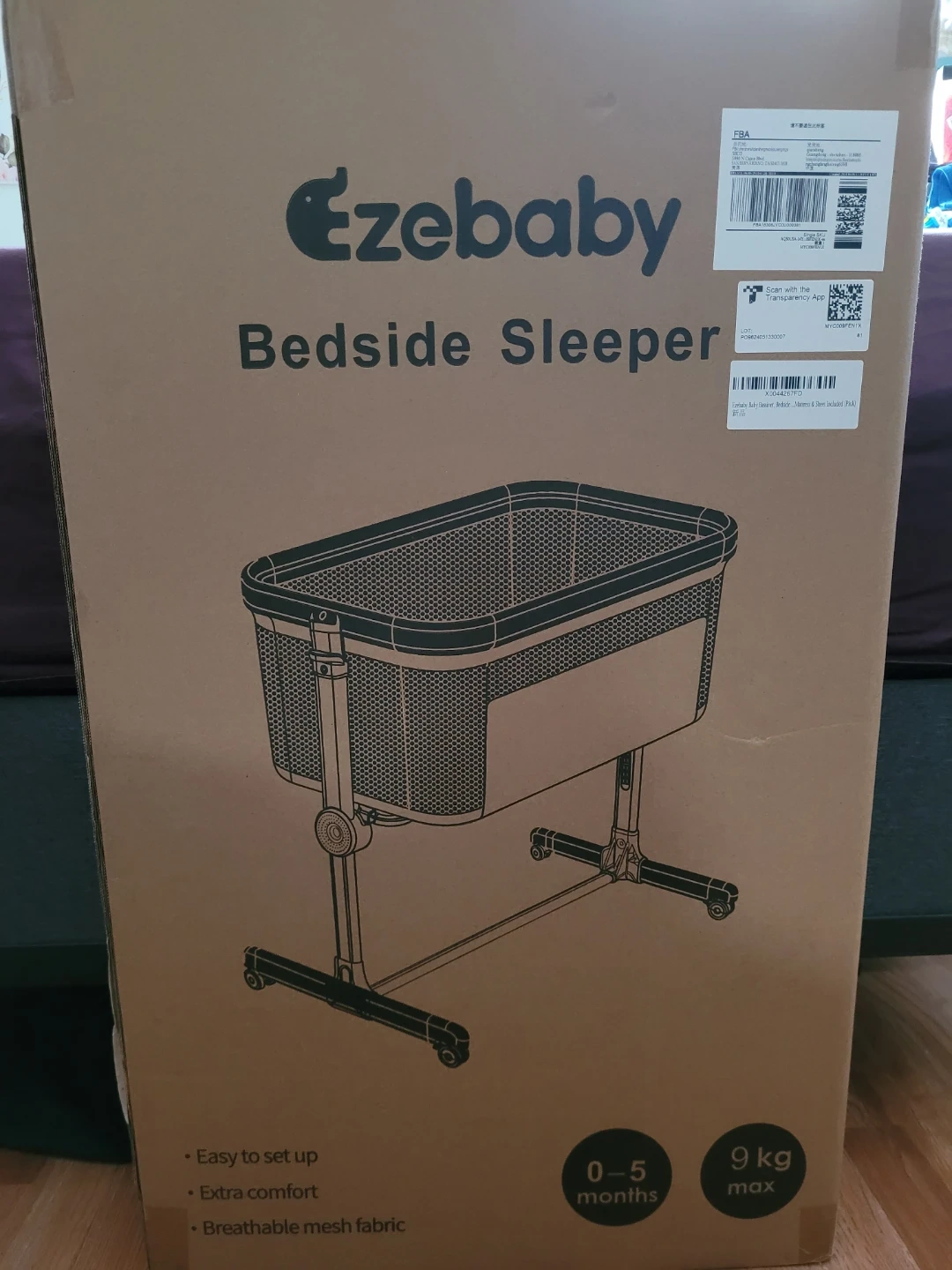 65Selling a brand new Ezebaby Bedside Sleeper, still in the box! It's easy to set up and designed for extra comfort with breathable mesh fabric. Suitable for babies aged 0-5 months, with a maximum weight of 9 kg. The box includes a bassinet and a sheet